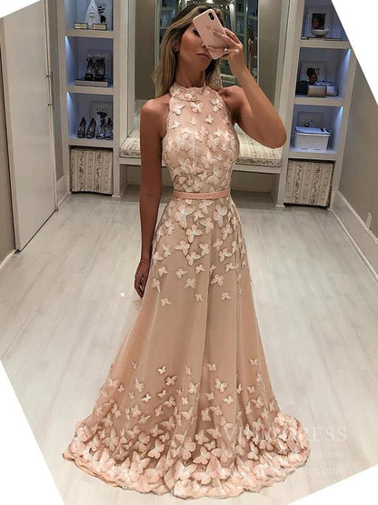 High Neck 3D Butterfly Junior Prom Dresses Backless Formal Dress FD1687