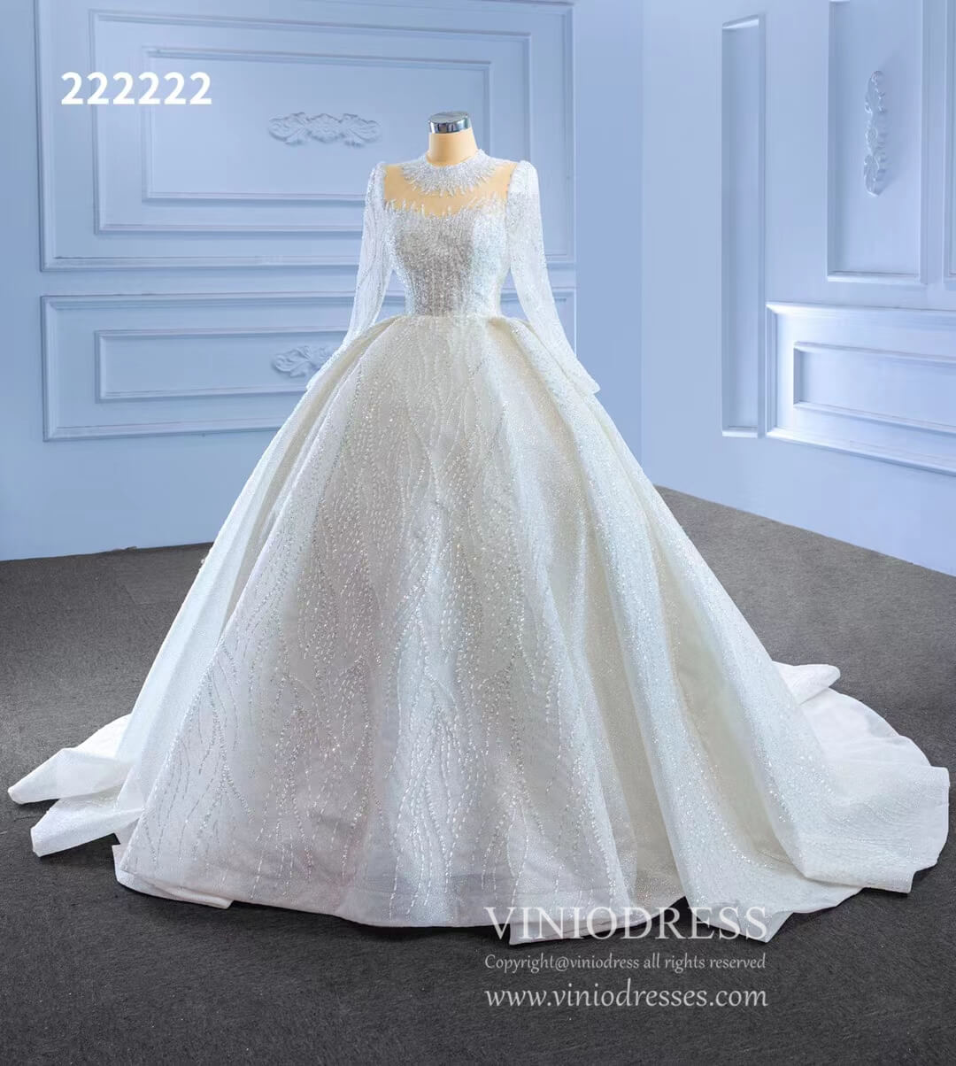 High Neck Ball Gown Wedding Dresses with Long Sleeve 222222