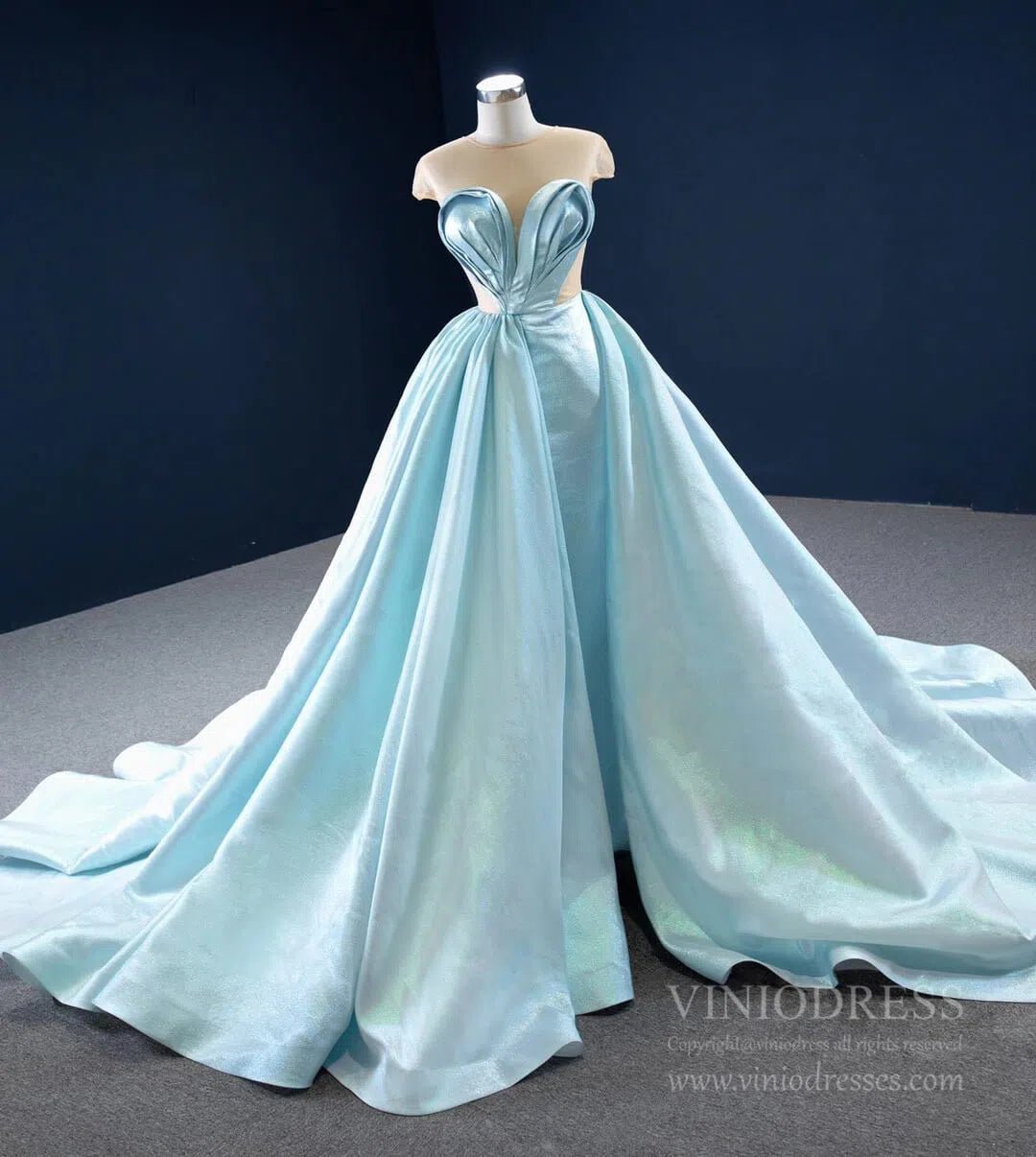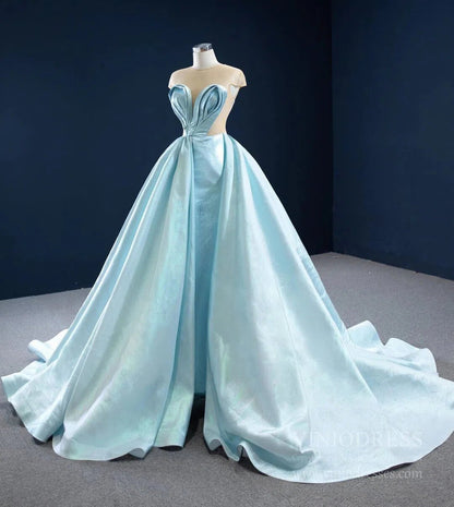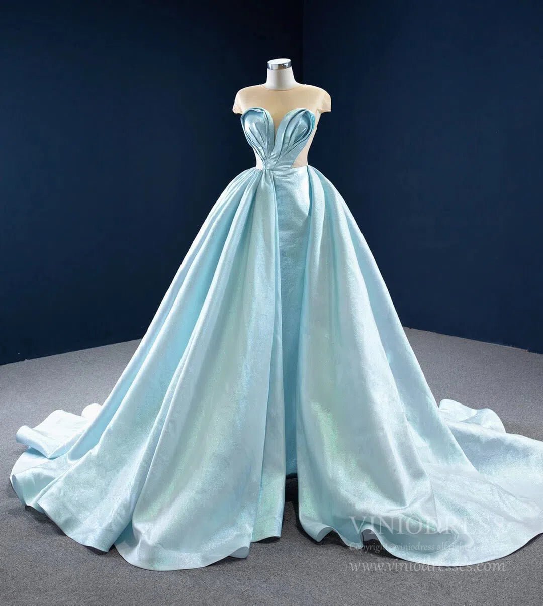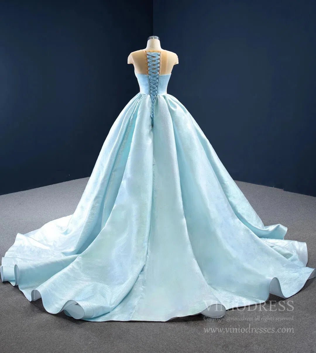 Ice Blue Prom Gowns Overskirt Shiny Sweet 16 Quince Dresses FD2457 viniodress