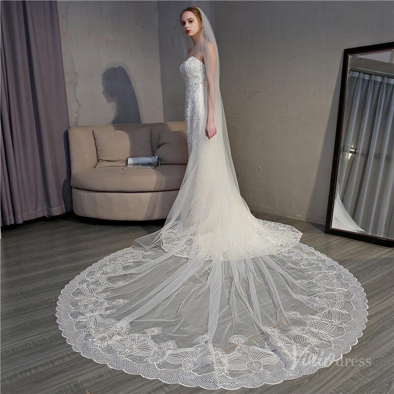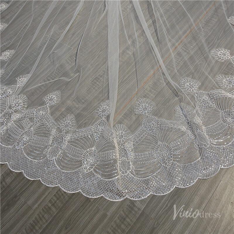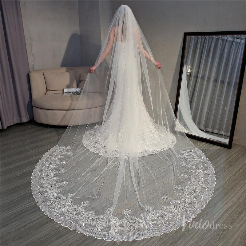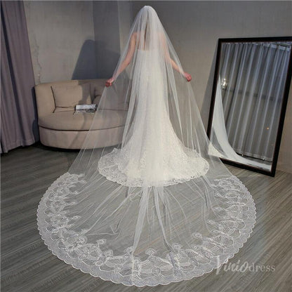 Ivory Tulle Lacy Cathedral Veil Viniodress TS18004