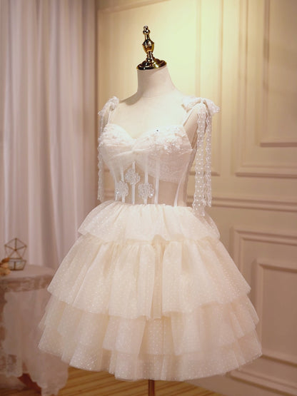 Dotted Ruffle Hoco Dresses Spaghetti Strap Tiered Graduation Dresses SD1538