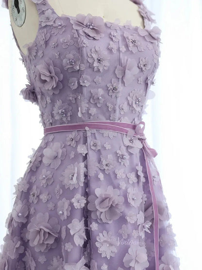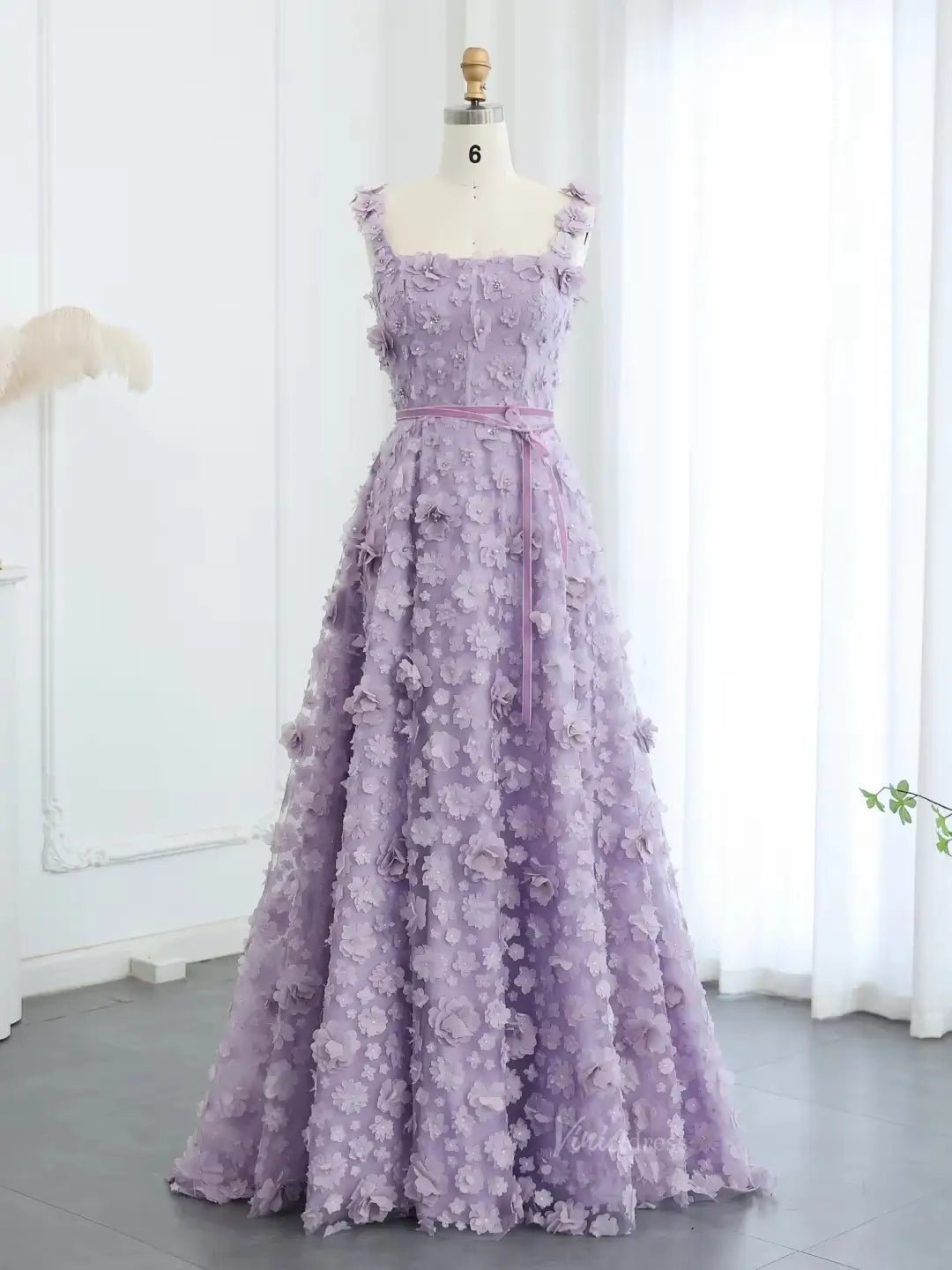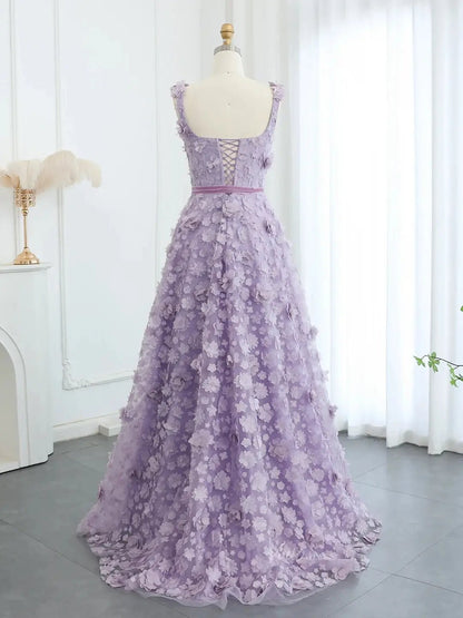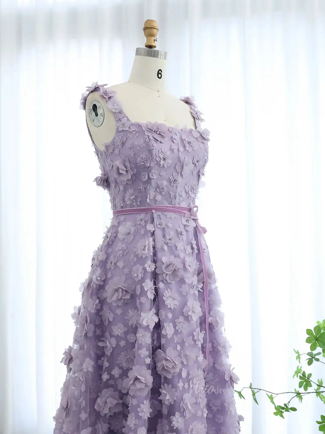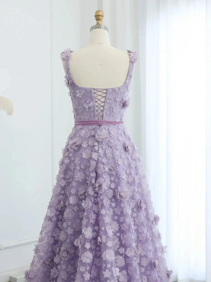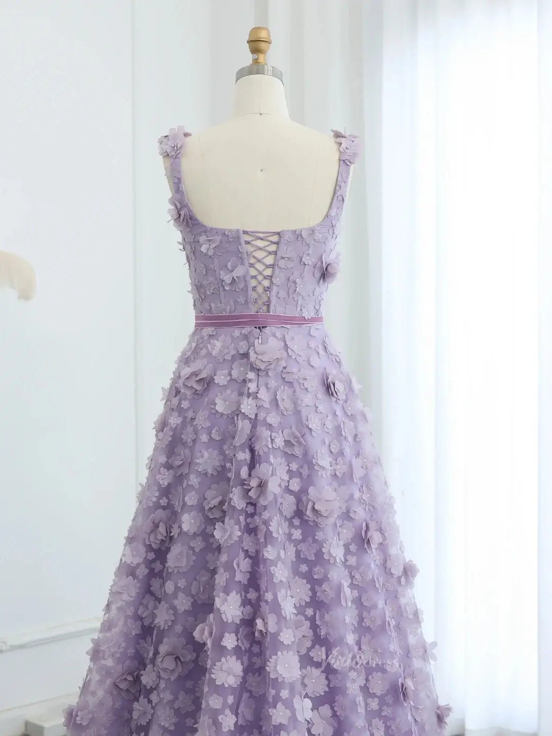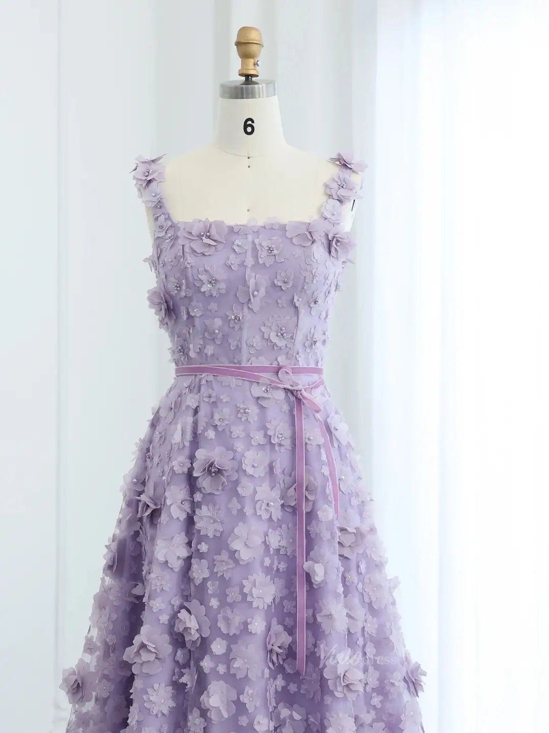 Lavender Ethereal Prom Dresses 3D Floral Formal Dresses, Square Neck, A-line BD058