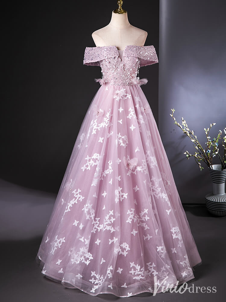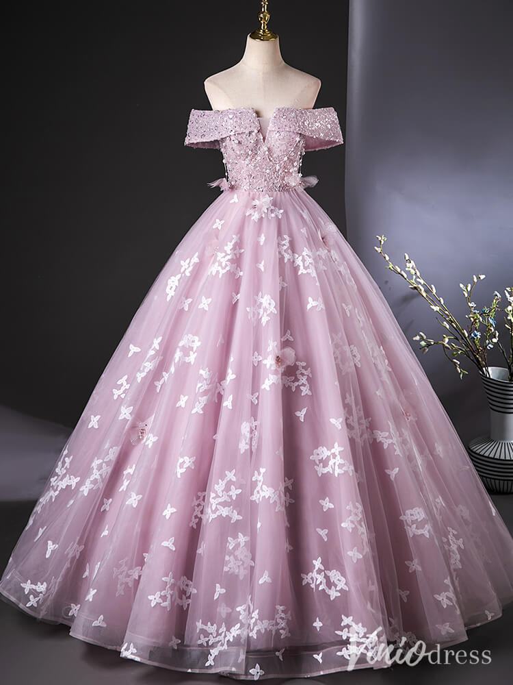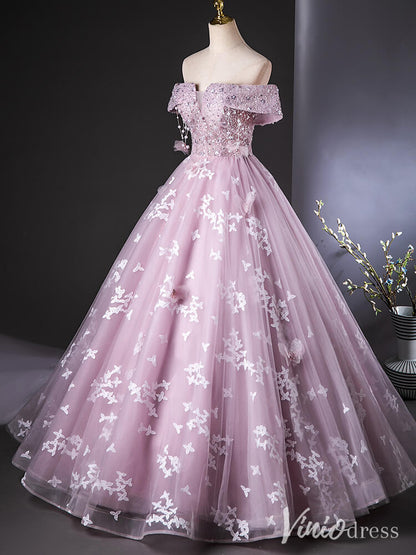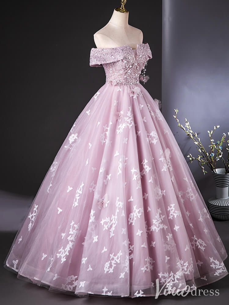 This elegant quinceanera dress features a beautiful lavender hue and a flattering off the shoulder neckline. The beaded bodice adds a touch of sparkle, while the delicate lace applique bottom creates a romantic look. Stand out at your special celebration with this stunning ball gown.