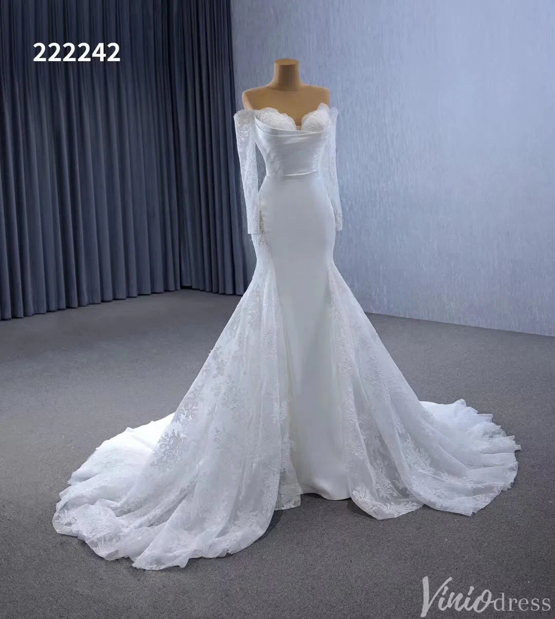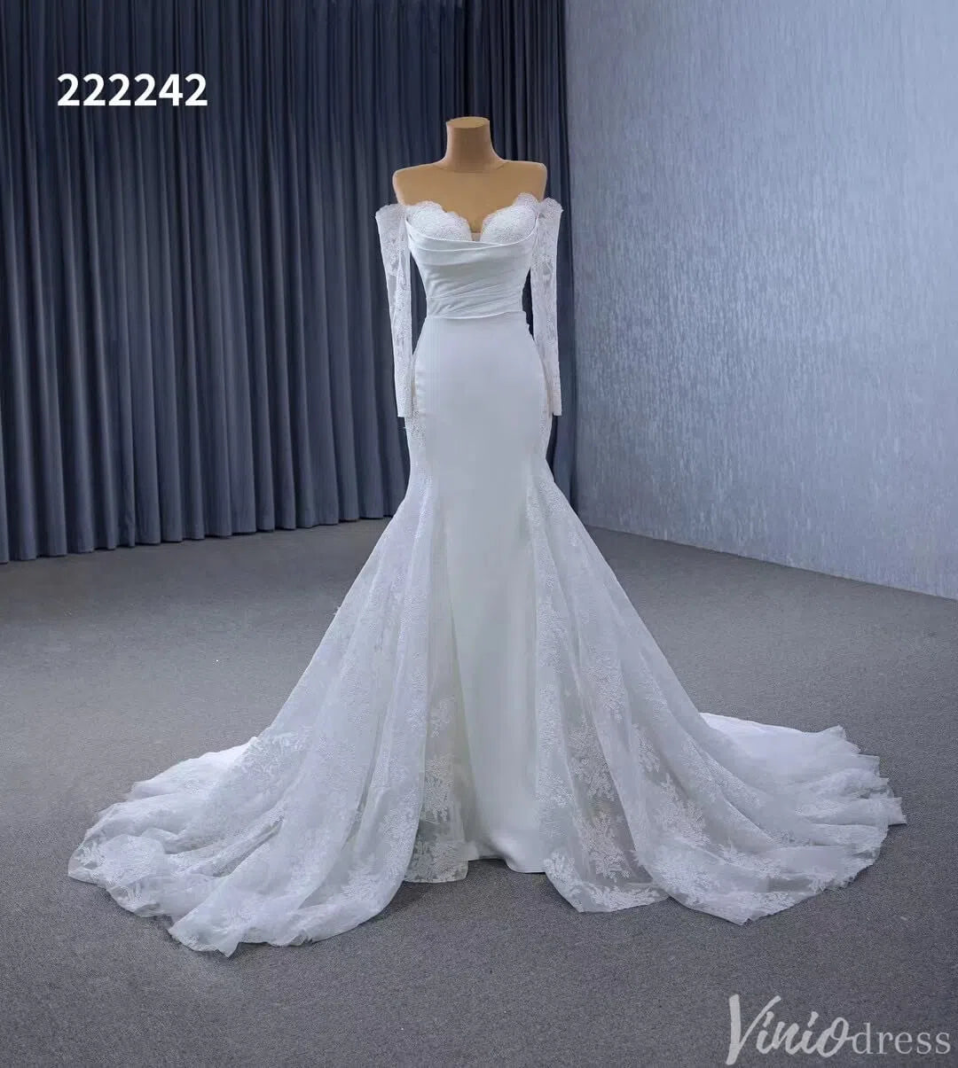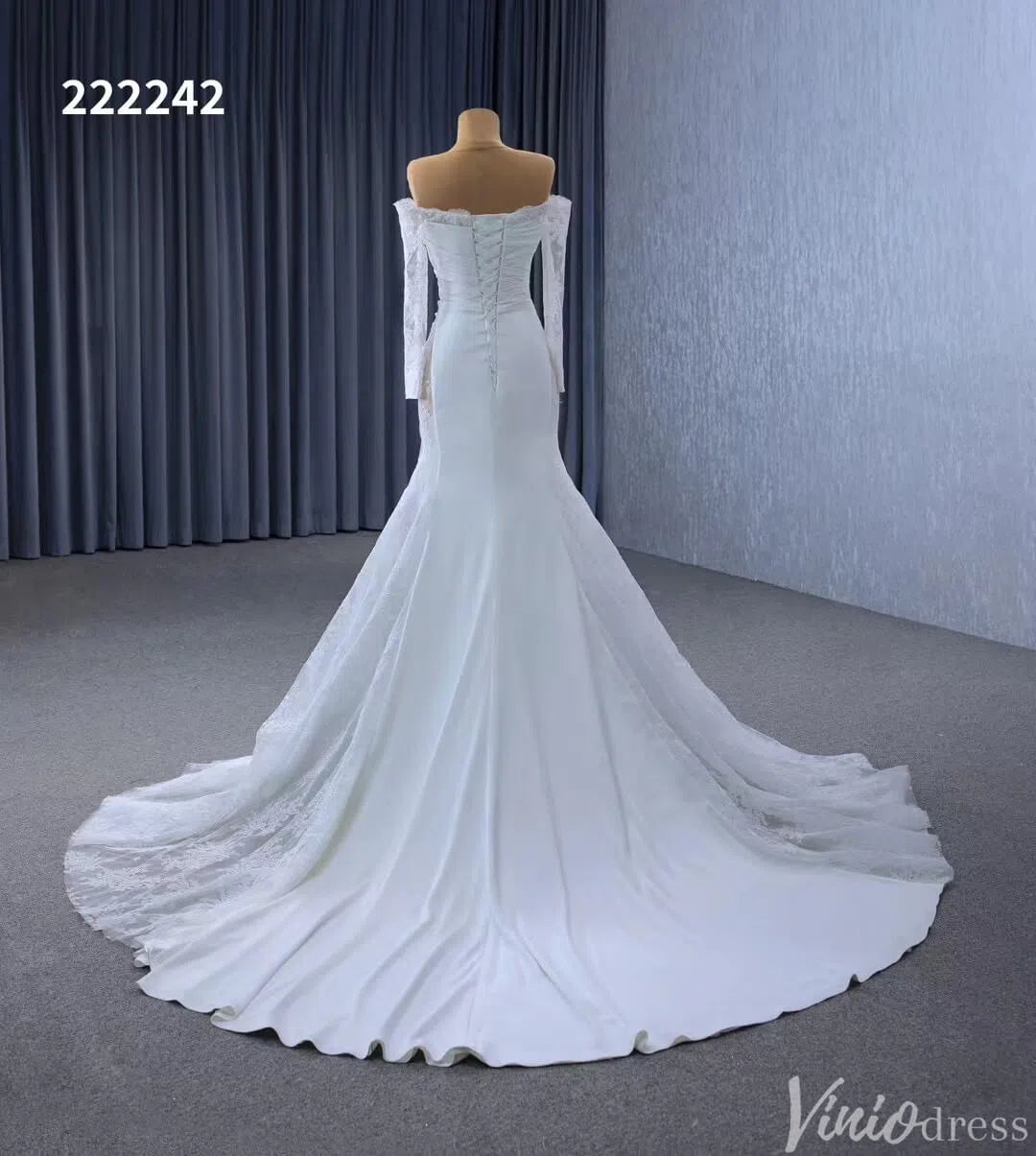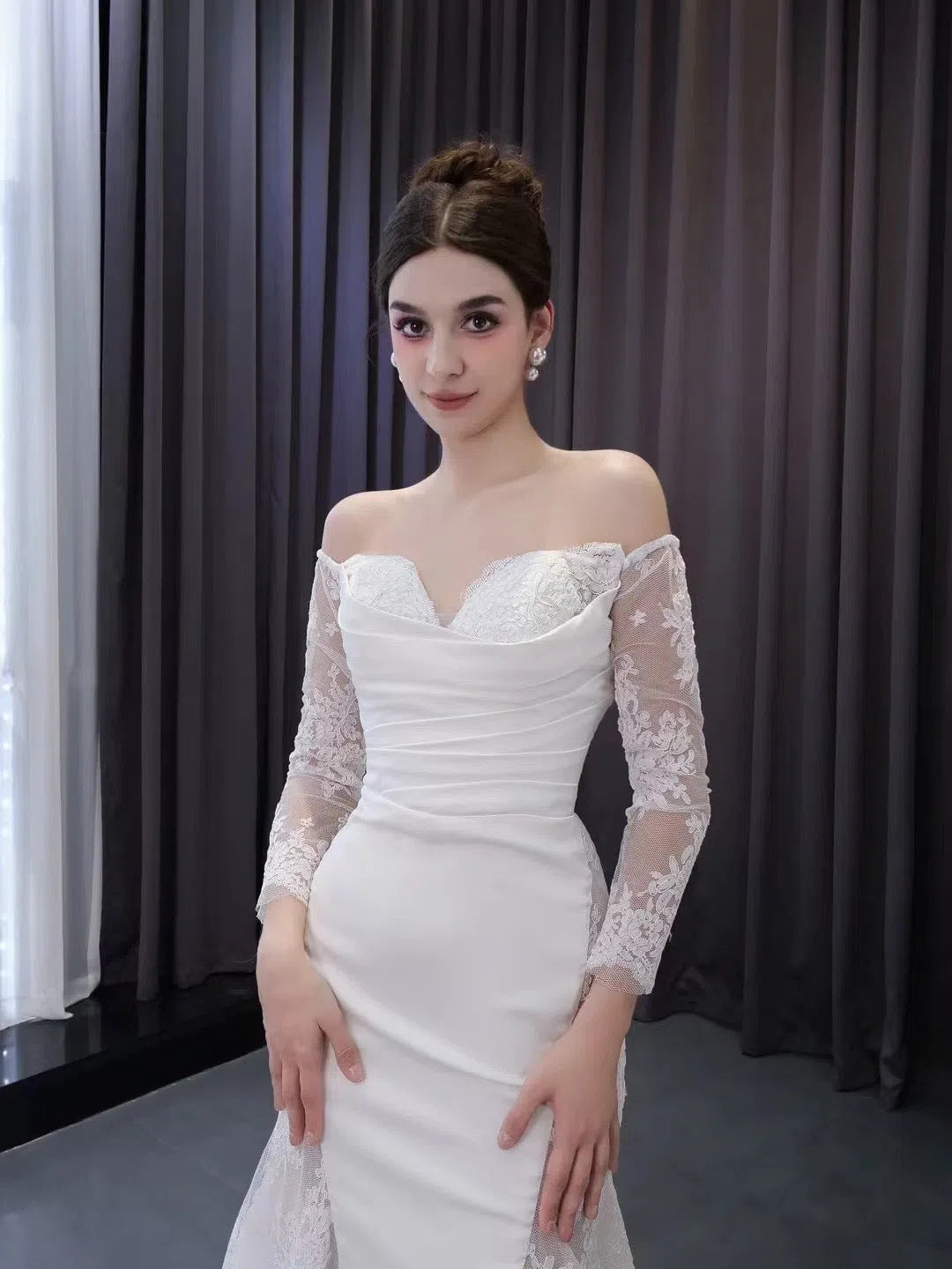 Experience modern elegance and romance with our Off the Shoulder Lace Wedding Dress. Featuring intricate lace detailing and a sheath silhouette, this dress will flatter your figure while still allowing you to move with ease. The off the shoulder neckline adds a touch of femininity, while the sleeves provide coverage for a timeless look. Make a statement on your special day with this stunning bridal dress.