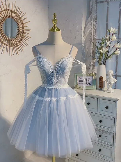 Light Blue Lace Homecoming Dresses Short Prom Dress SD1405