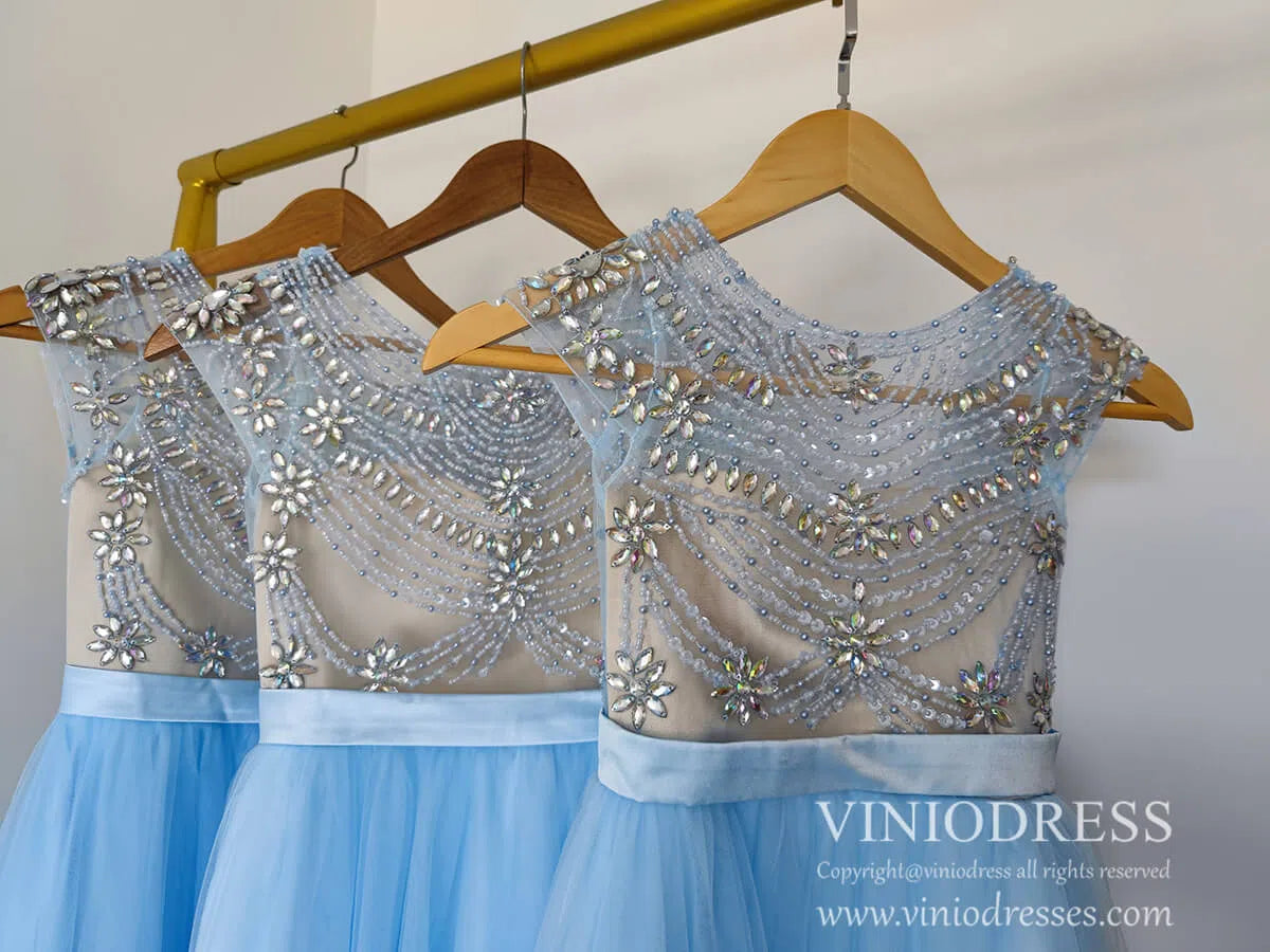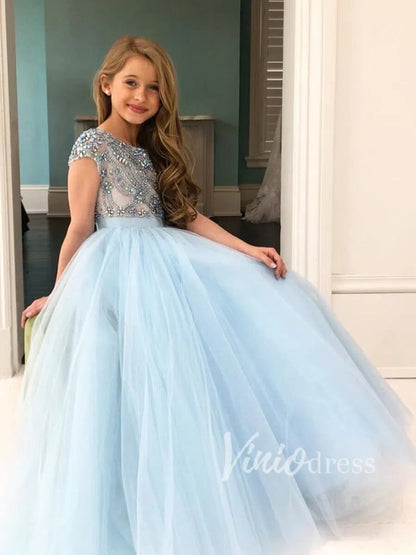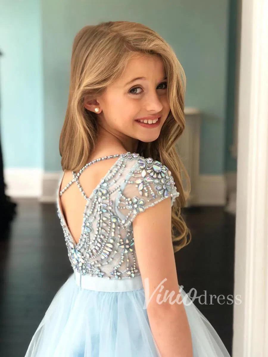 Light Blue Rhinestone Beaded Flower Girl Dresses GL1028