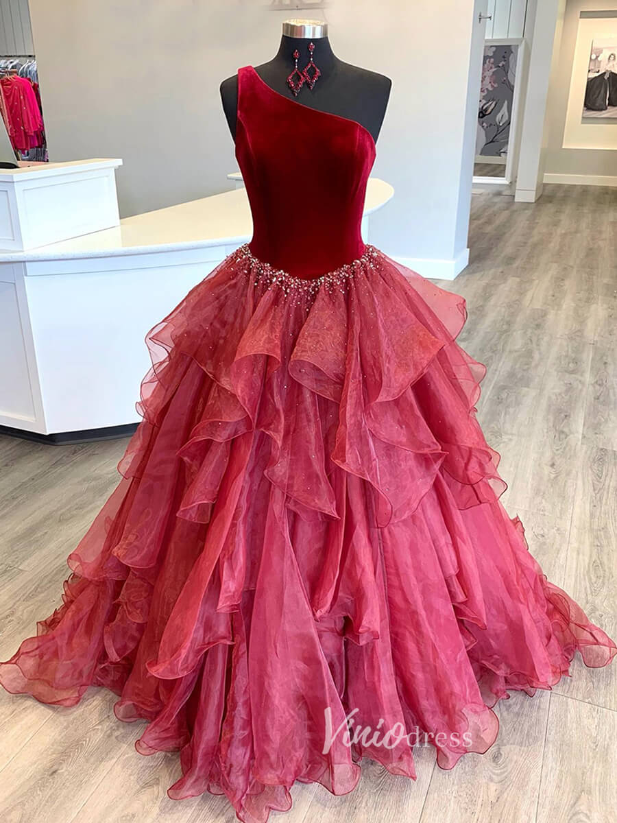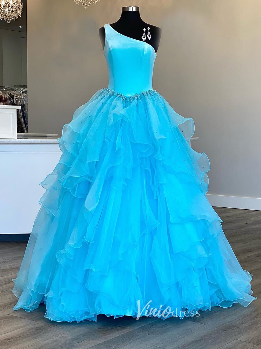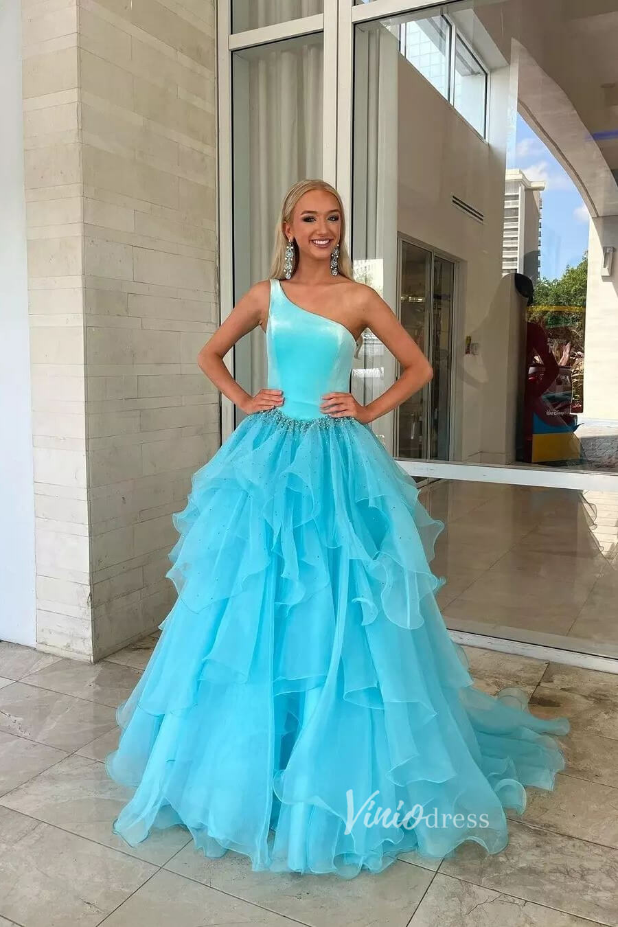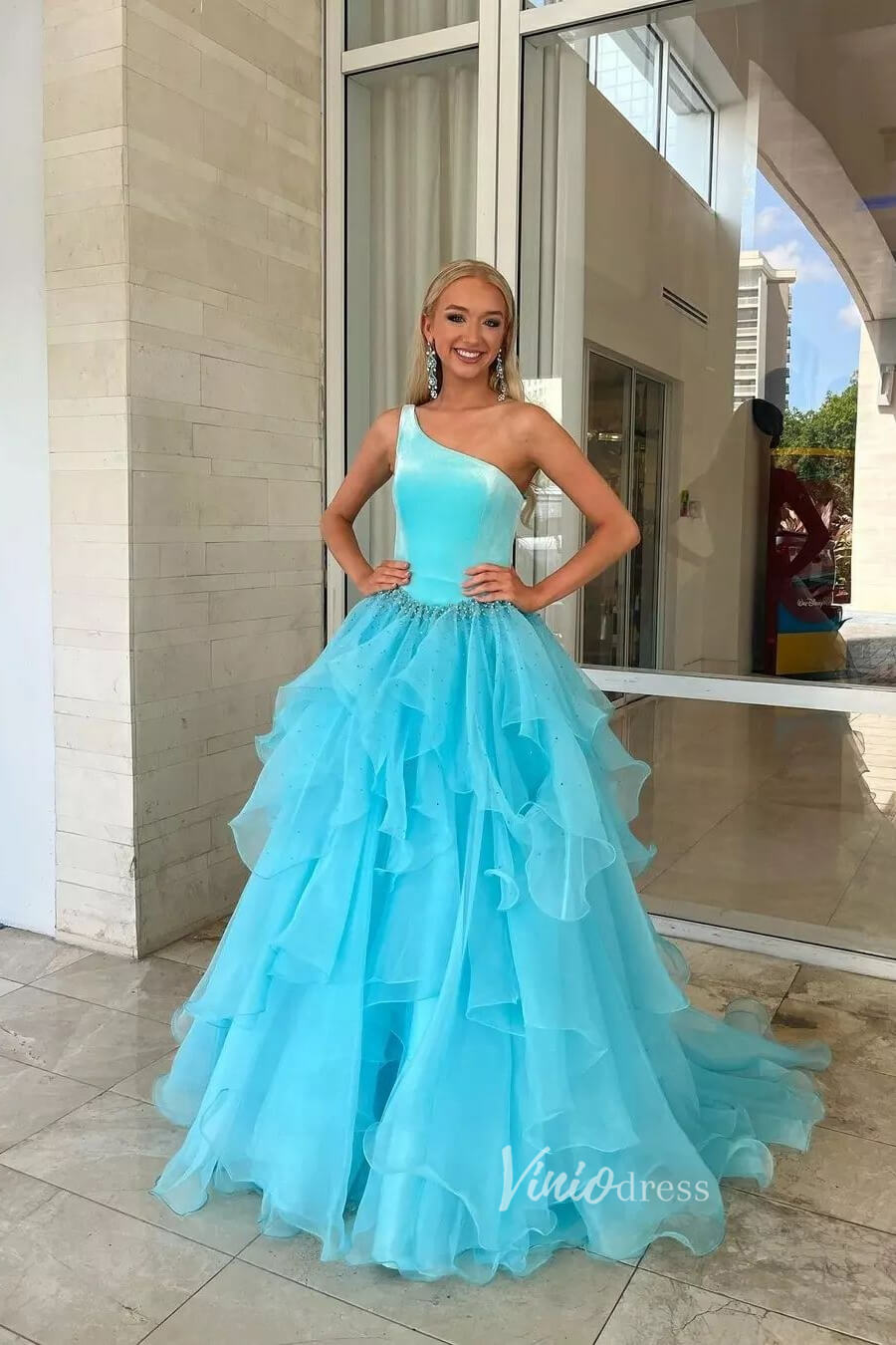 Ruffle Organza Prom Dress One Shoulder Pageant Dresses FD2974