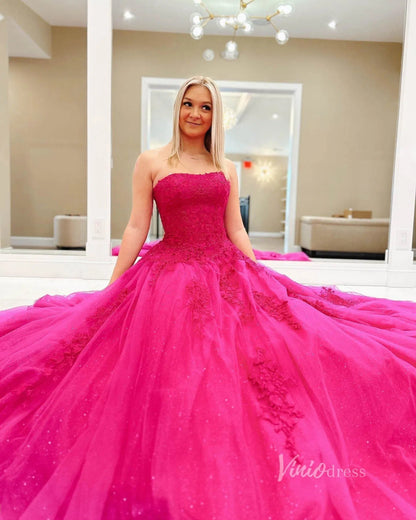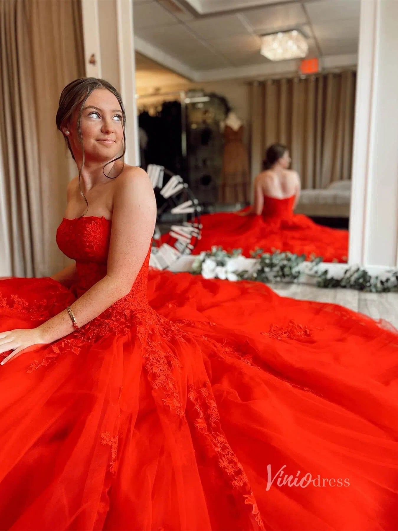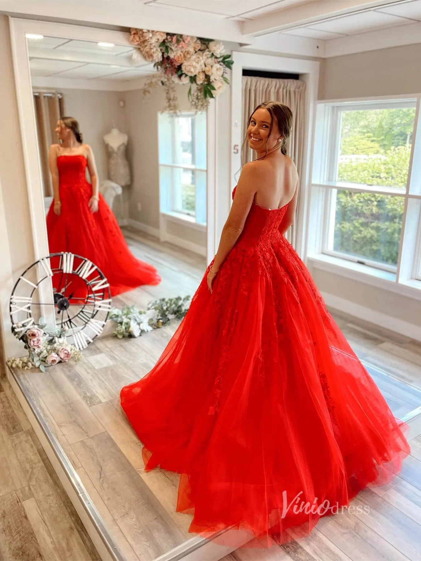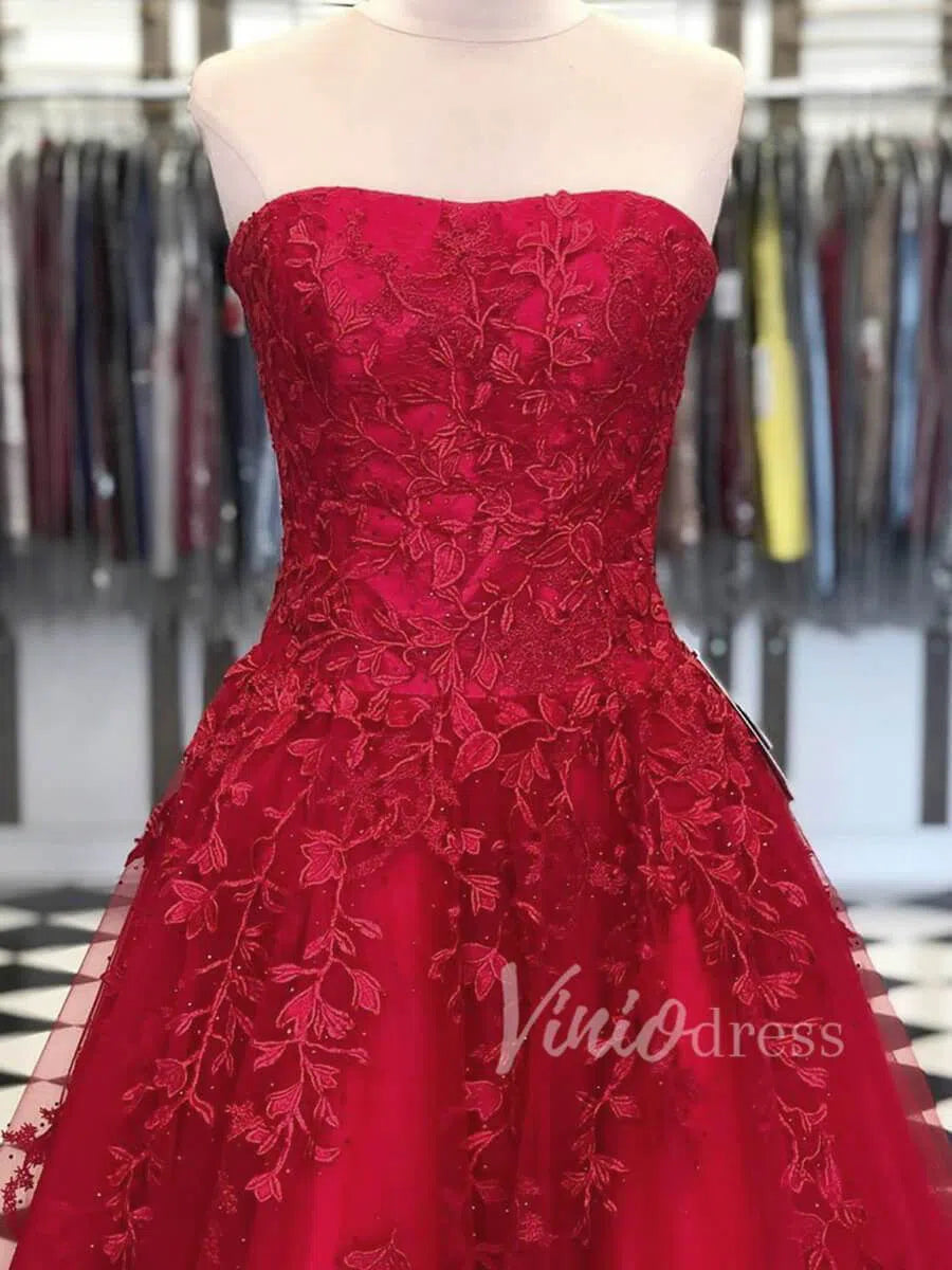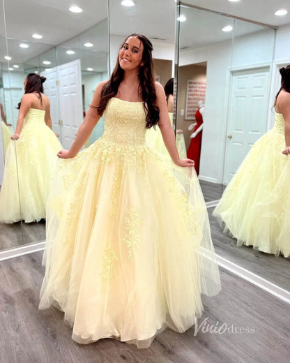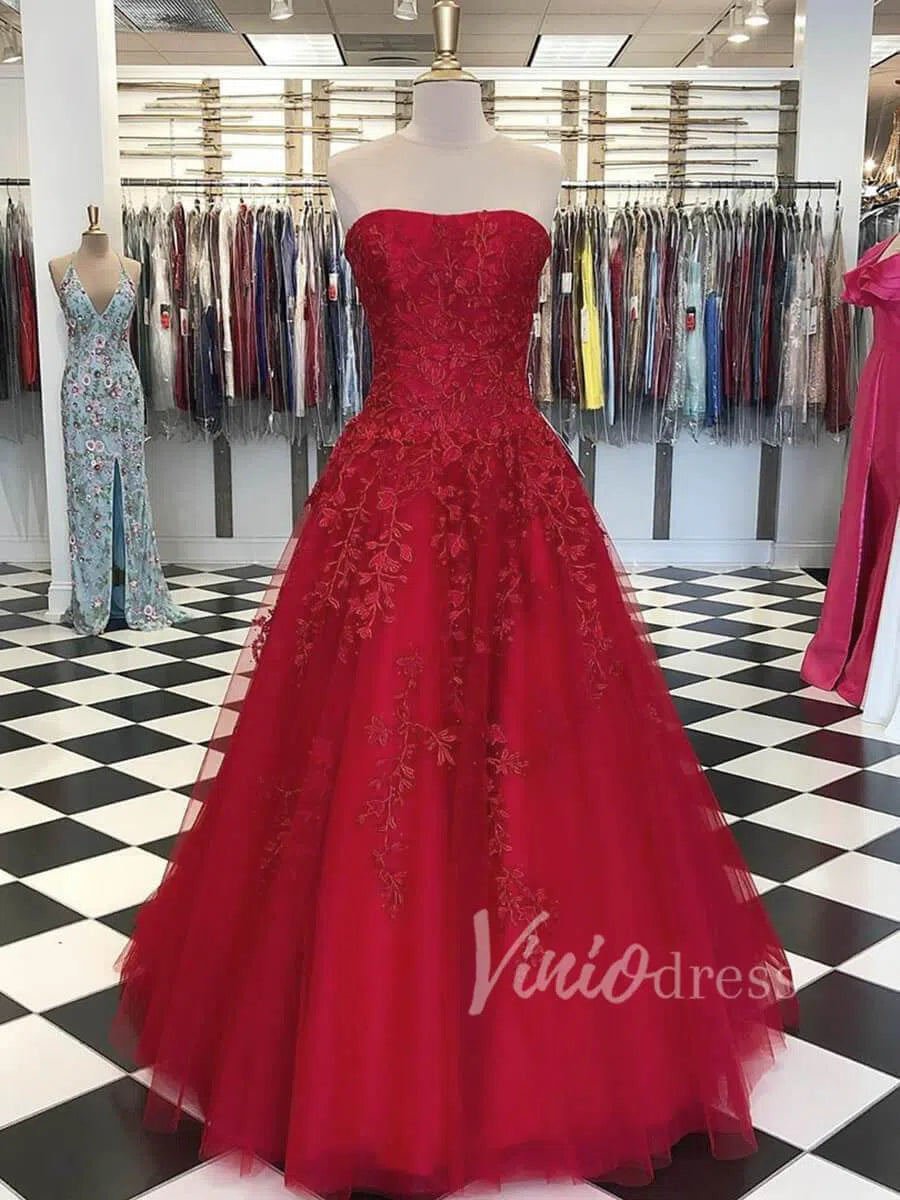 This classic a-line prom dress features delicate lace appliques and a flattering straight across neckline. Available in a variety of colors, this stunning dress is perfect for making a timeless statement at prom or any other formal event. The intricate lace detailing adds a touch of elegance, making this dress a must-have for any fashion-forward individual.