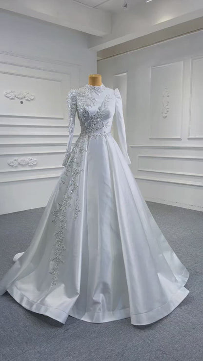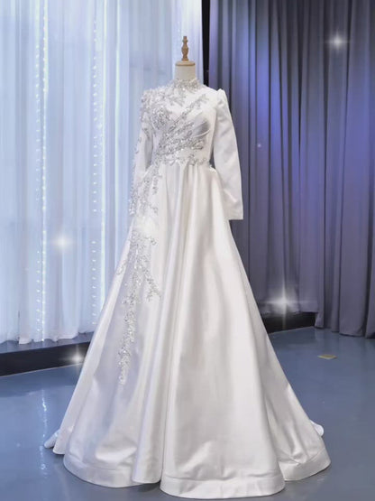 Long Sleeve Beaded A-line Wedding Dresses vestido de novia 67396