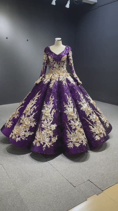 Long Sleeve Customized Ball Gowns for Muslims 66704 viniodress