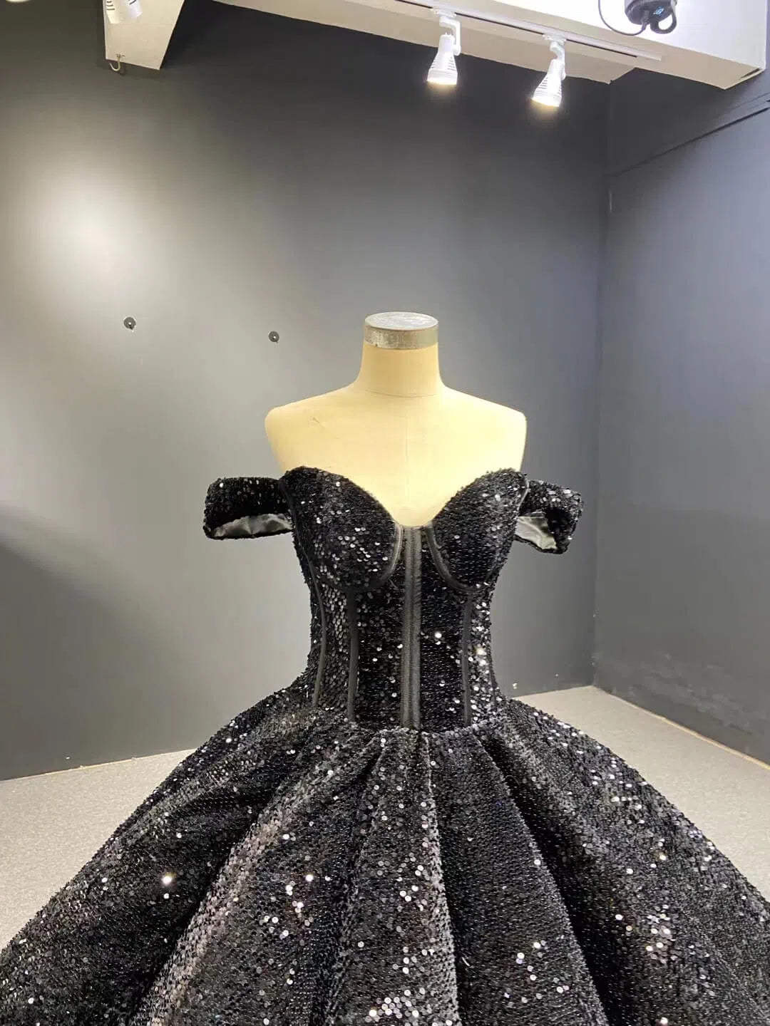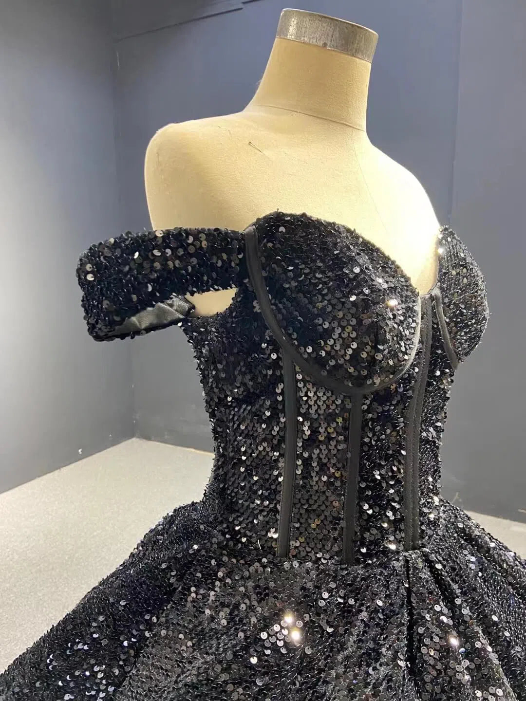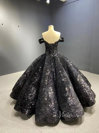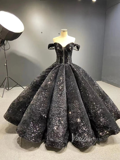 Sparkly Black Sequin Ball Gown Wedding Dress Sweet 16 Dresses 66567 viniodress