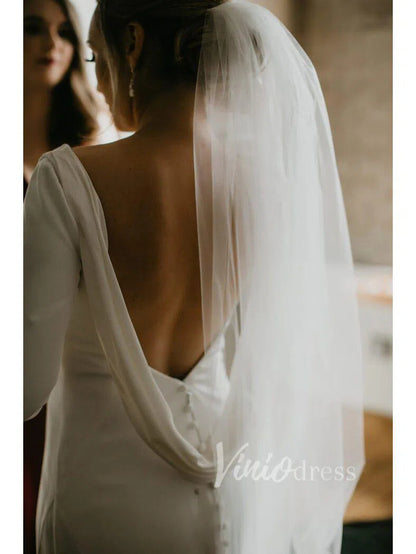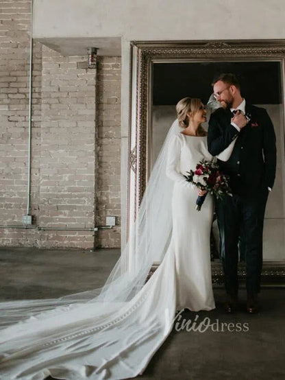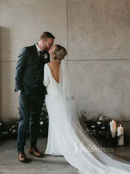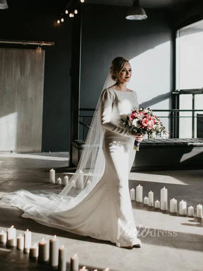 Elegant Ivory Lace Mermaid Wedding Dress with Deep Plunging Neckline, Long Lace Sleeves & Corset Bodice – ML174
