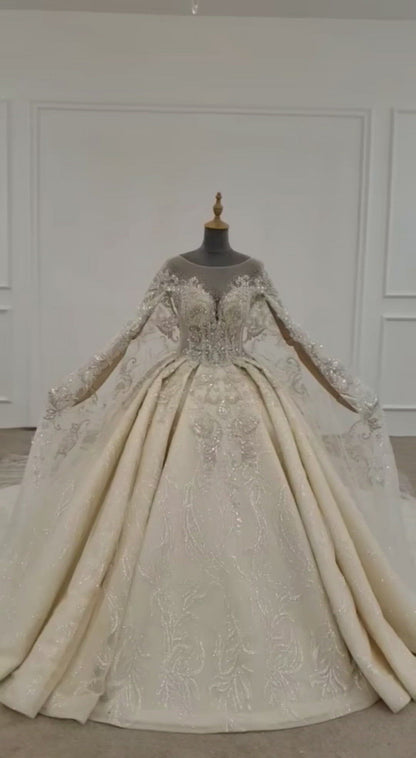 Paired with a matching cape featuring a dramatic 120cm cape train, this design delivers a striking two-piece statement perfect for photos, ceremonies, and runway-worthy moments. Ideal as a quinceañera ball gown, gala couture dress, debut formal gown, or even a non-traditional wedding dress, this piece is made for unforgettable celebrations.