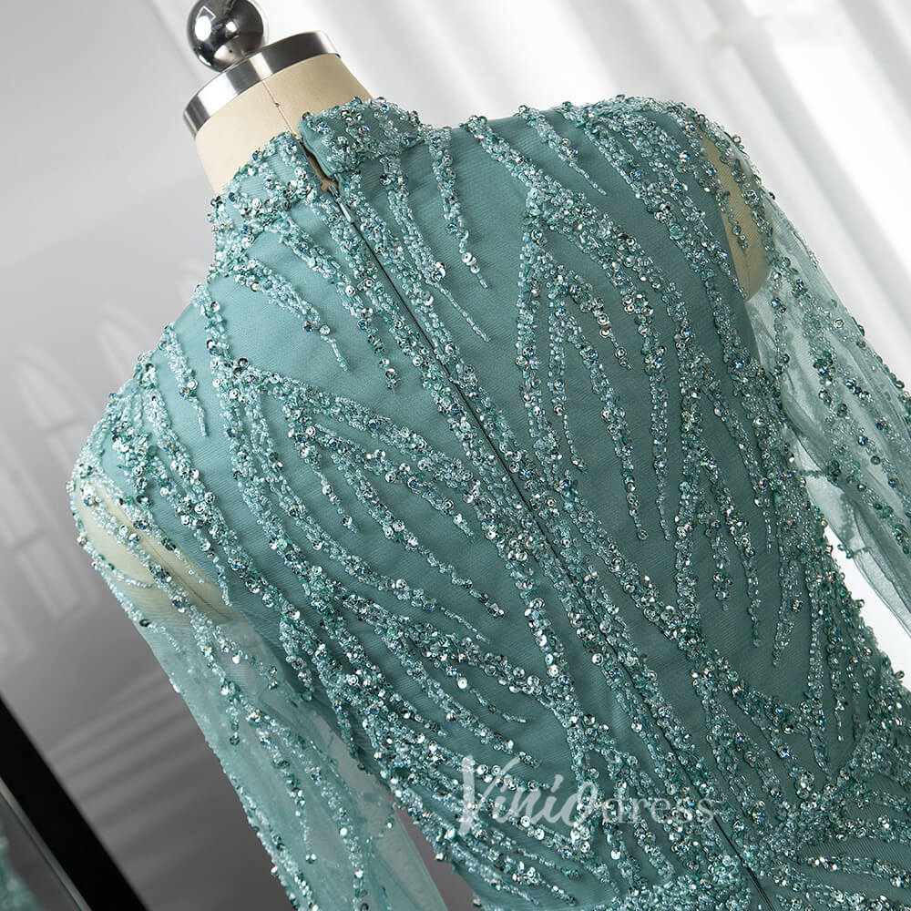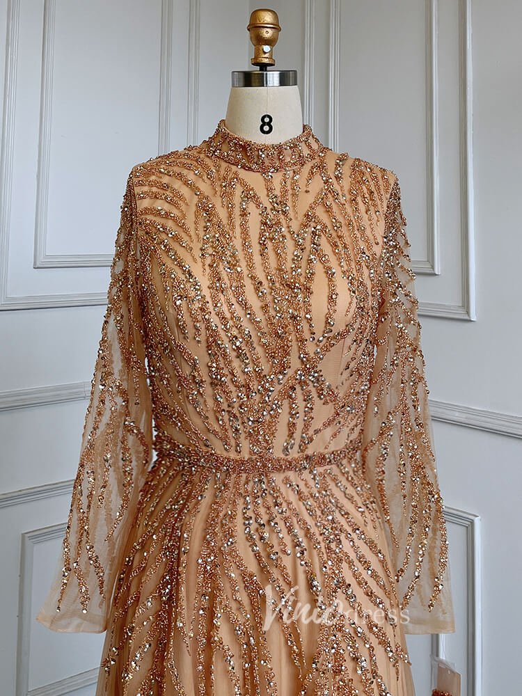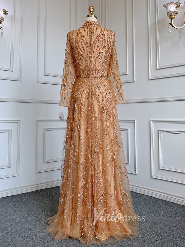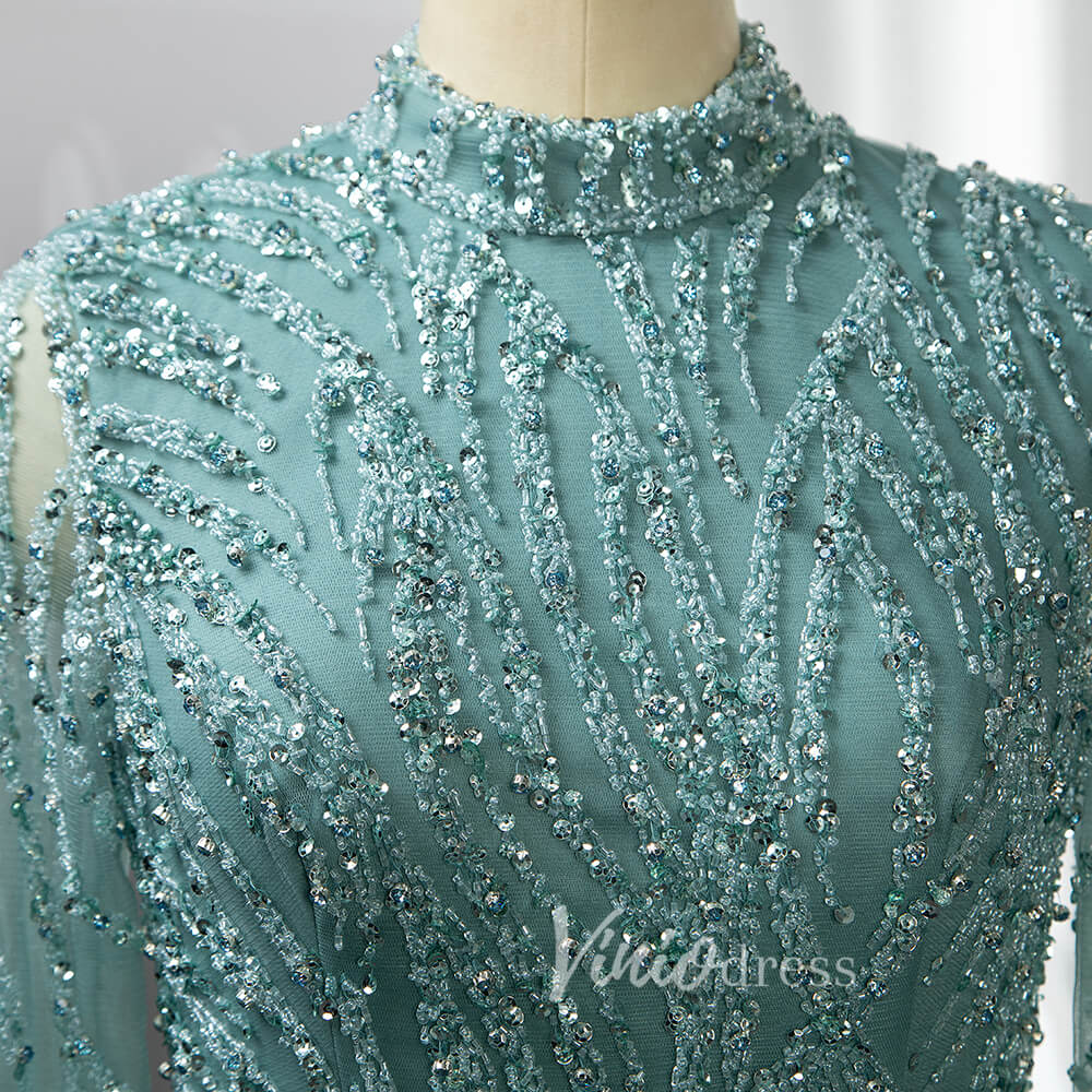 Luxury Beaded Evening Dresses High Neck Long Sleeve Mother of the Bride Dress 20019