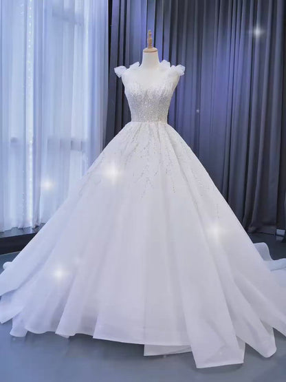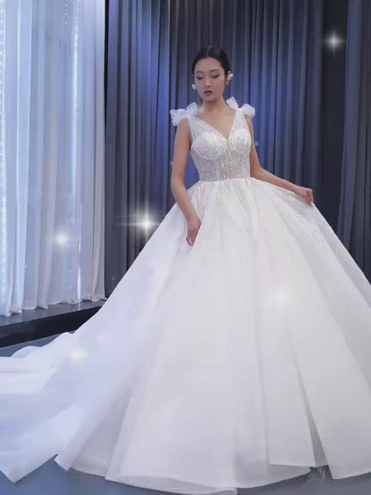 Luxury Dubai Wedding Dresses V-neck White Ball Gown 67534