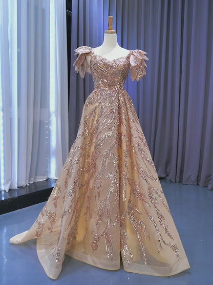 Luxury Gold Prom Dress Long A-line Pageant Dress 222203
