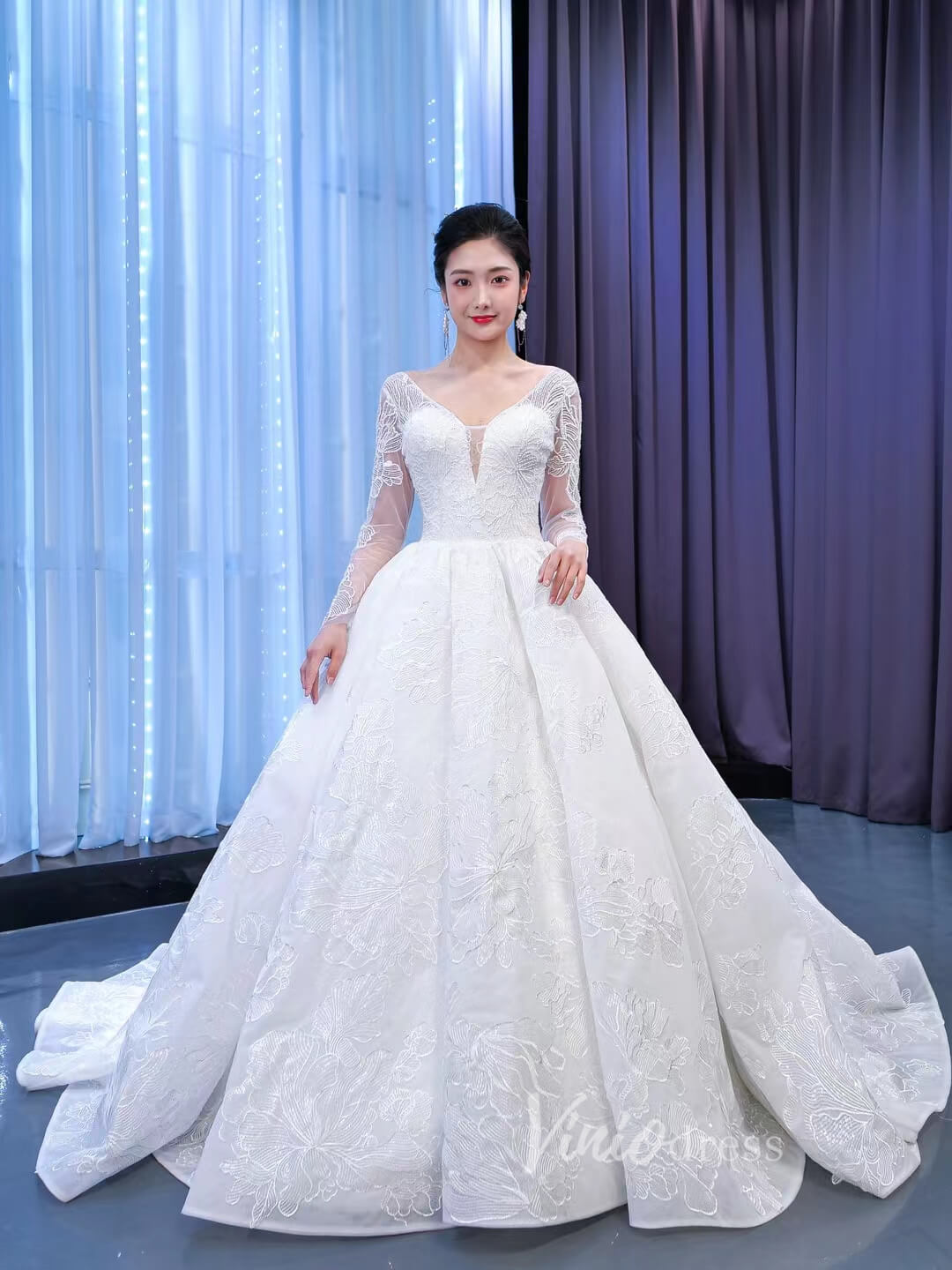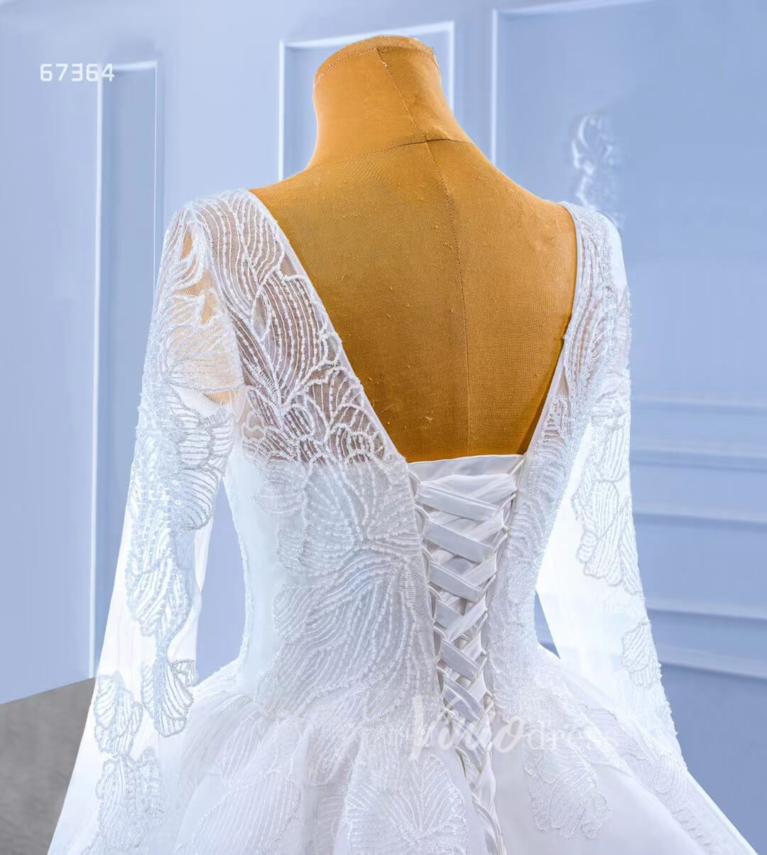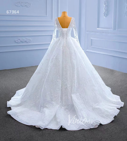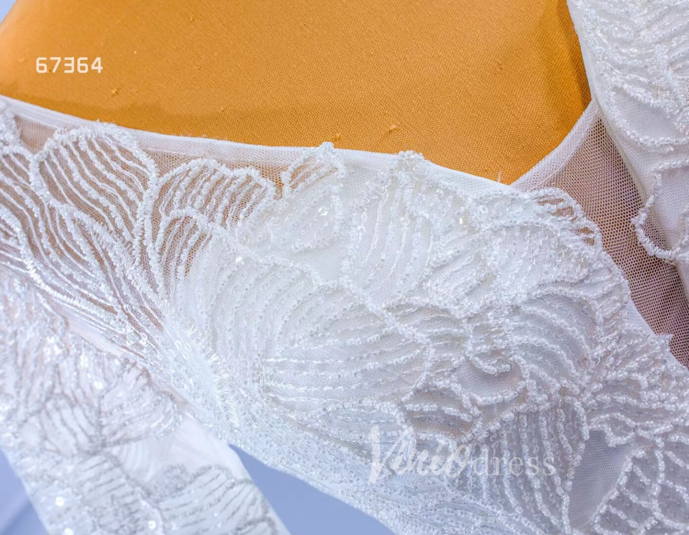 Beaded V-neck Ball Gown Wedding Dress with Sleeves 67364