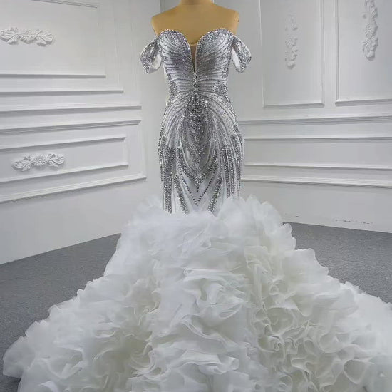 Luxury Ruffled Beaded Mermaid Wedding Gown 67354 VINIODRESS