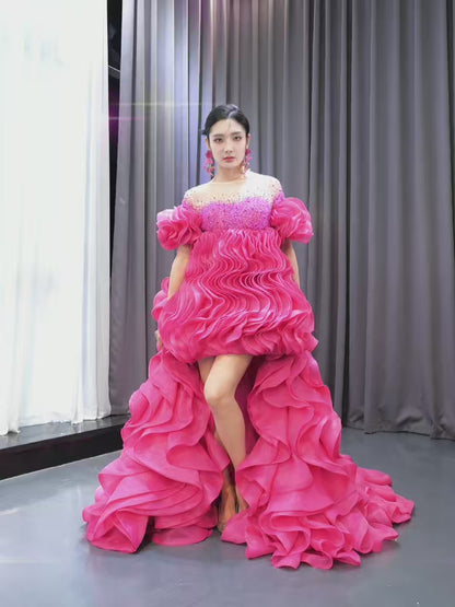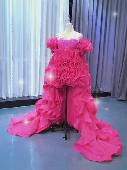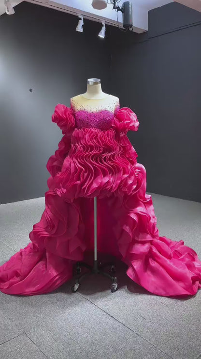 Magenta Ruffle Prom Dress High Low Pageant Dress 67565