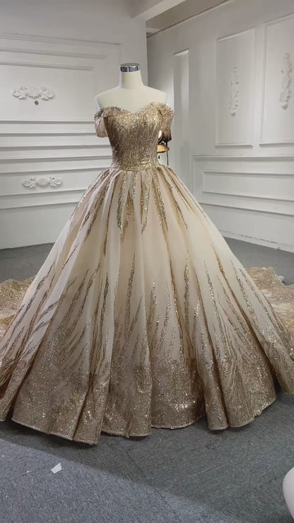 New Off the Shoulder Gold Wedding Dresses Luxury Debut Dress 67013 viniodress