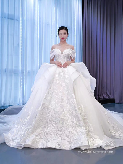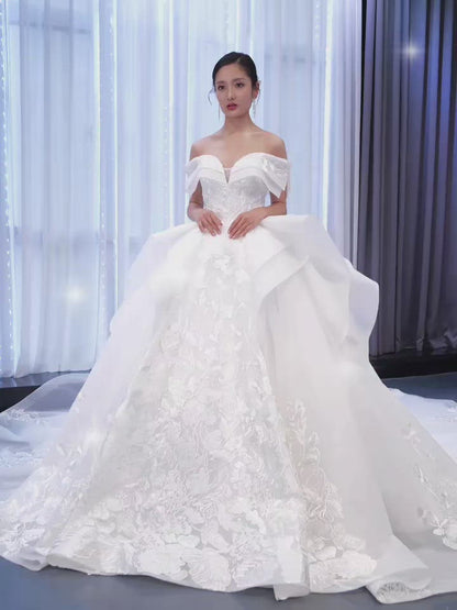 Off Shoulder Lace Applique Wedding Gown Dubai Wedding Dress 67344
