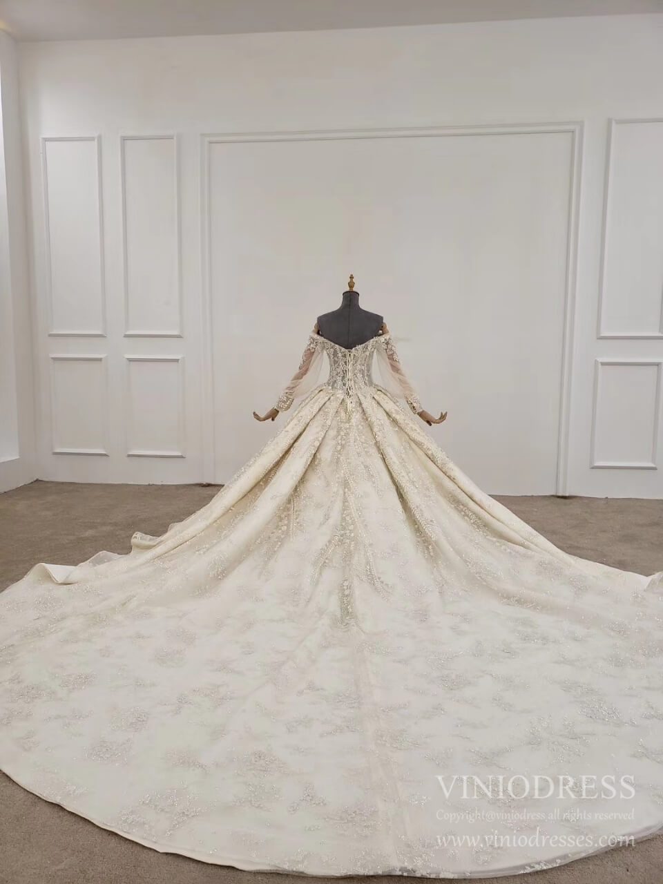 The voluminous layered pink ball gown skirt is adorned with shimmering sparkly floral appliqués, cascading delicately across the lace and tulle layers. Vintage-inspired structured overlays with floral detailing add depth and couture texture, enhancing the gown’s dimensional silhouette. Finished with an elegant 1-meter long train ball gown, this design flows effortlessly with every step.
