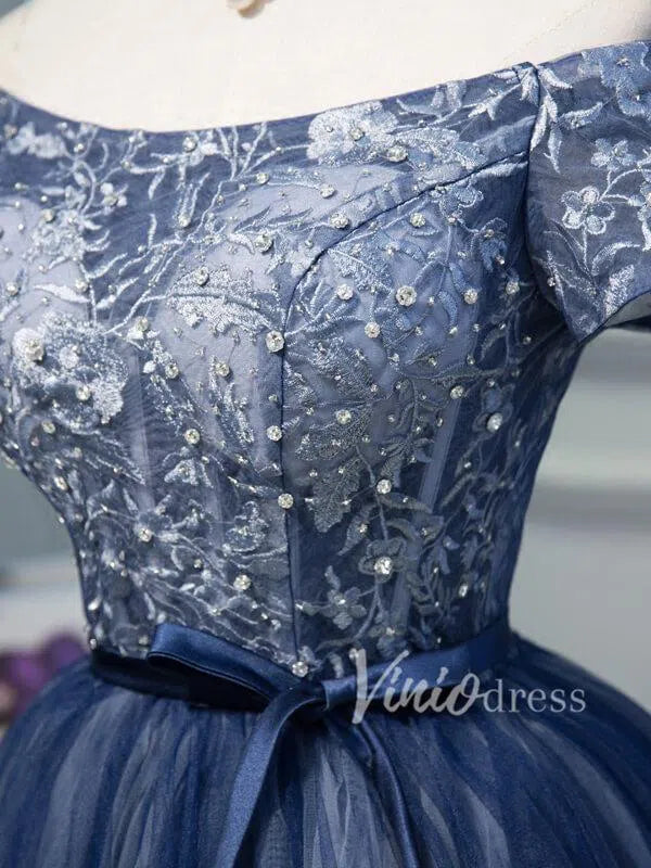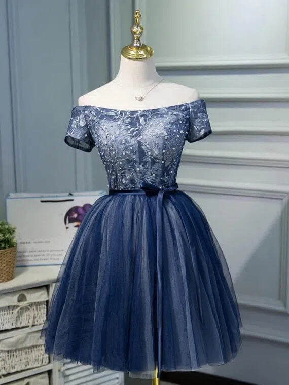 Off the Shoulder Navy Blue Homecoming Dresses SD1017