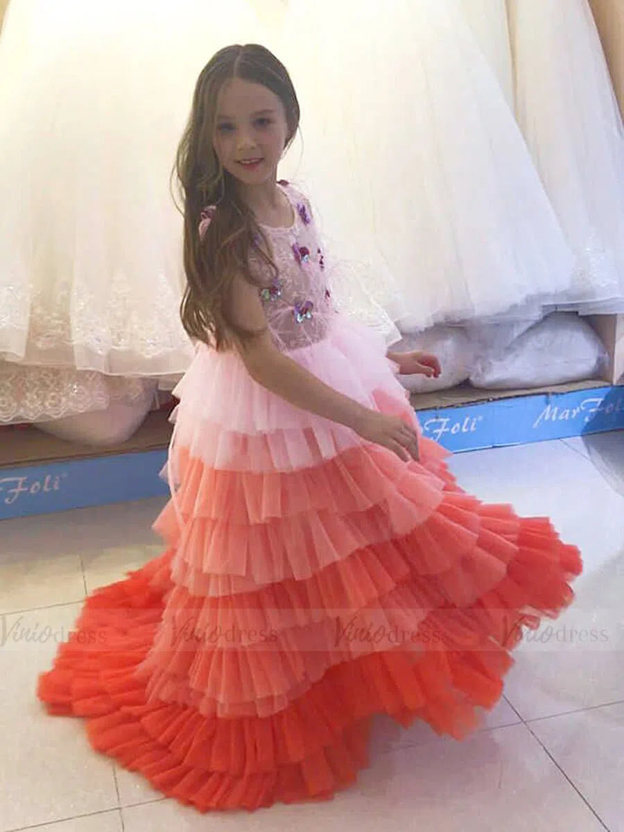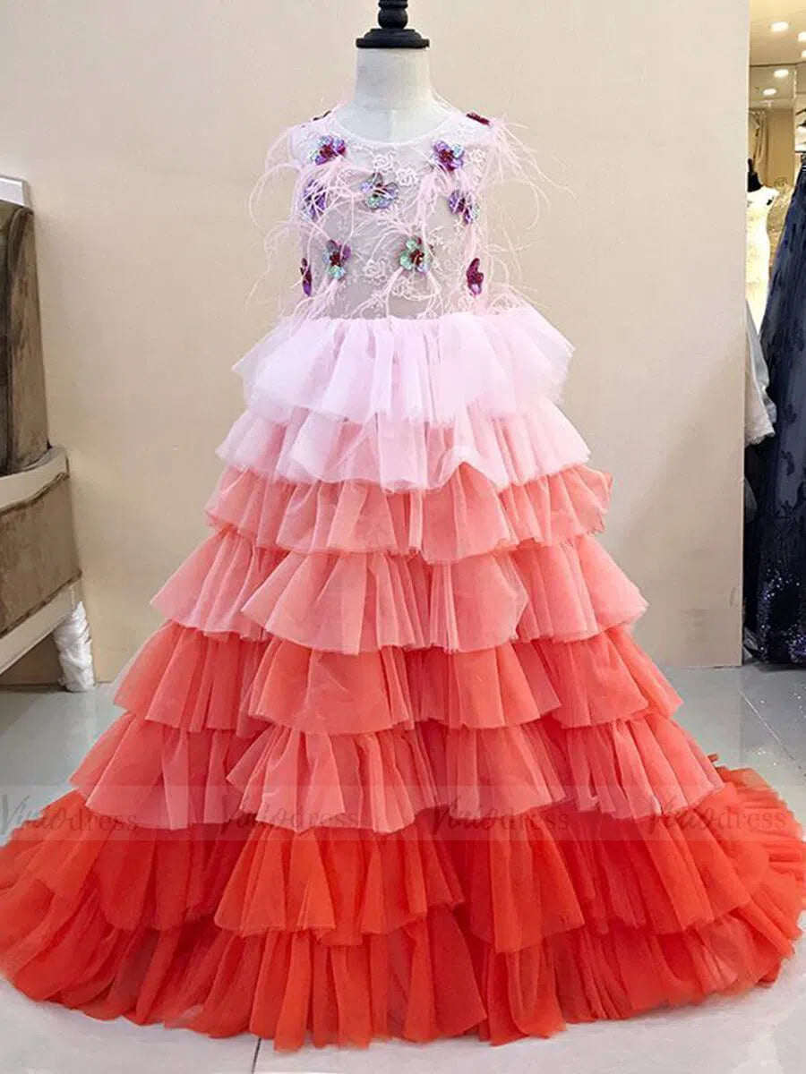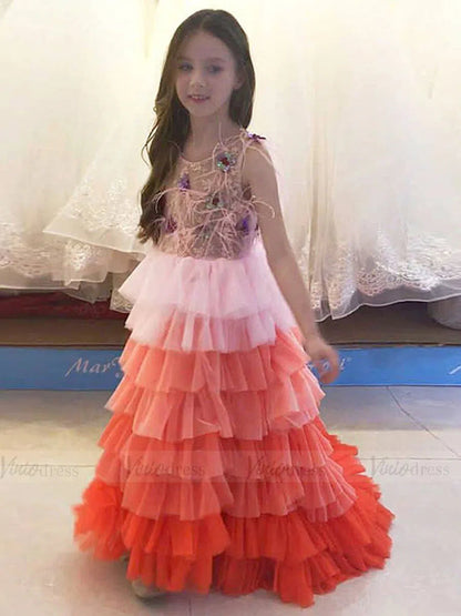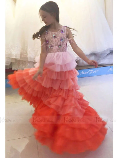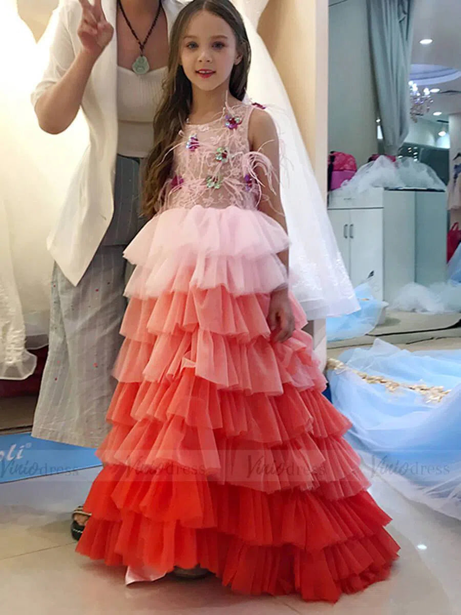 Ombre Red Kids Dresses with Ruffle Skirt GL1032