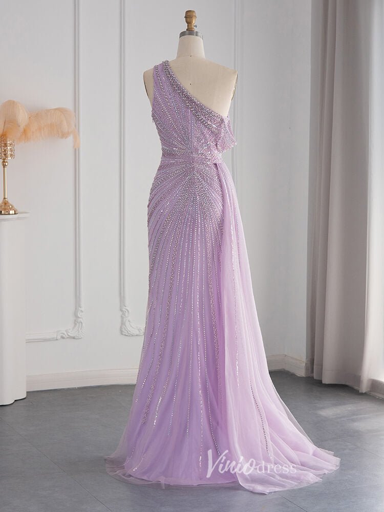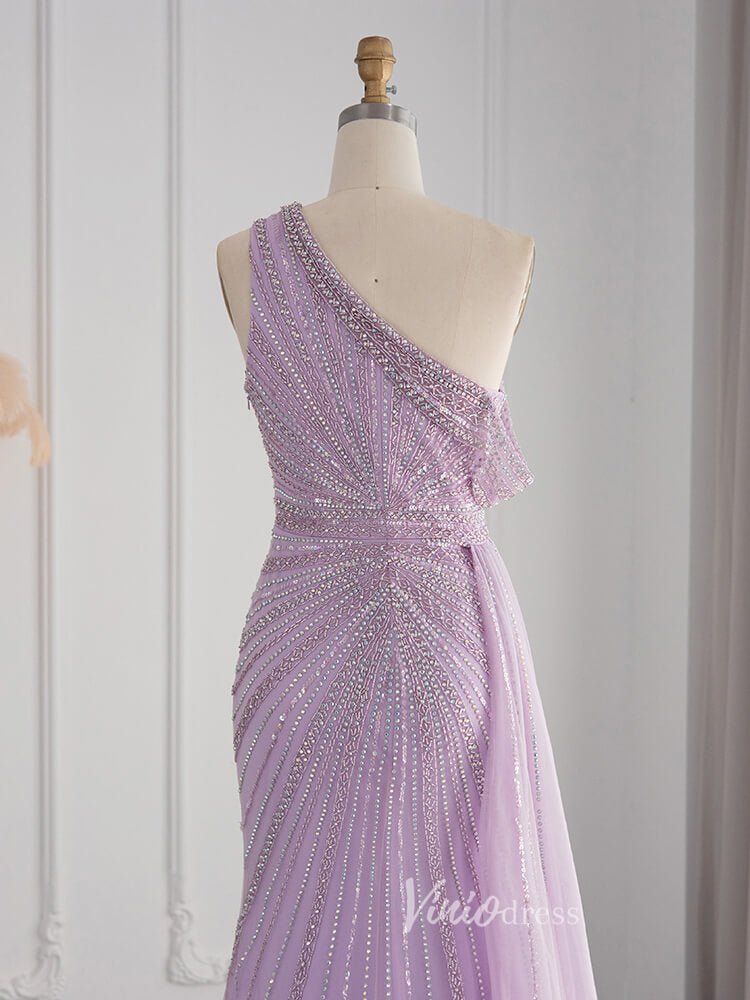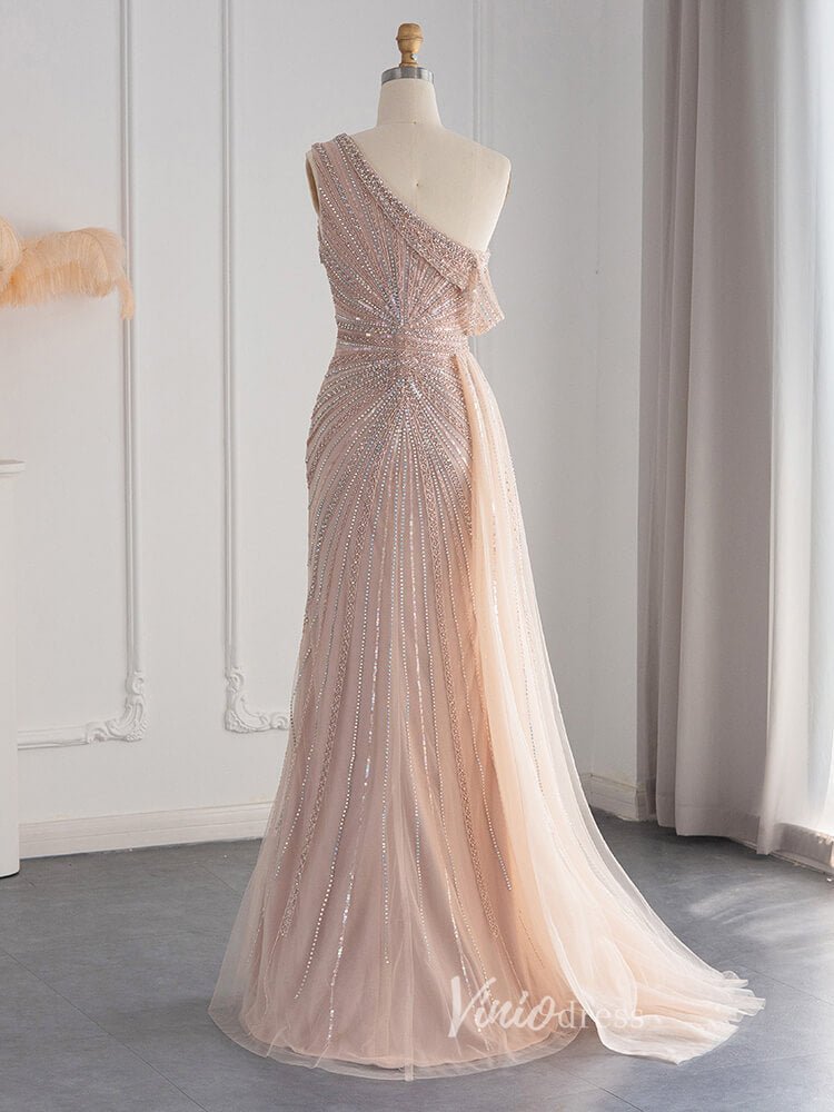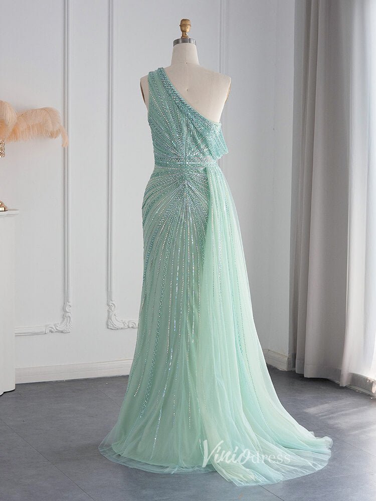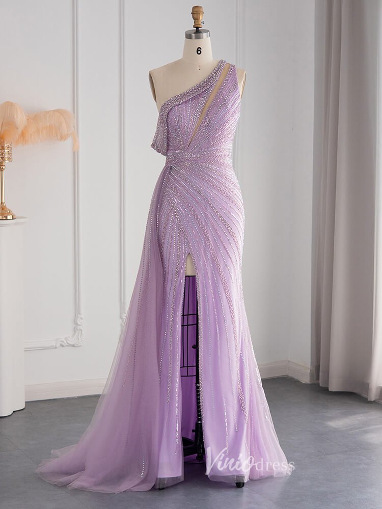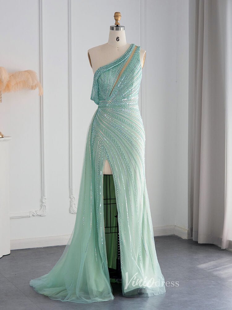 One Shoulder Beaded Prom Dresses High Slit 1920s Evening Dress 20078