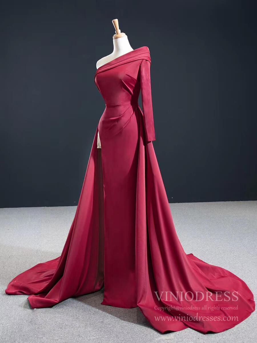 Turn heads in our Elegant Burgundy Prom Evening Gown—a stunning sheath dress perfect for pageants and formal events. This sophisticated gown features a chic one-shoulder design and long sleeves that add timeless elegance, while a daring high slit provides a modern, alluring twist. The unique A-line overskirt enhances movement and dimension, ensuring you make a memorable entrance at any event. Ideal for proms, pageants, and award ceremonies, this gown offers a flawless blend of classic style and contemporary glamour.