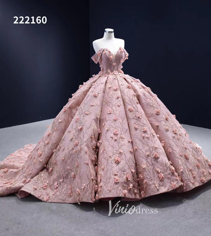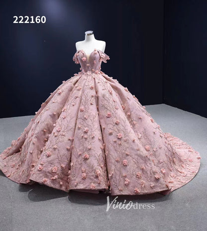3D Flower Pink Quince Dresses Ball Gown Wedding Dress Off the Shoulder 222160