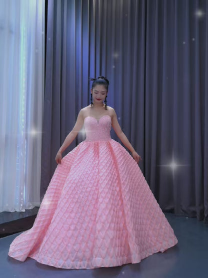This elegant gown features a strapless ball gown silhouette with a sweetheart neckline and beaded bodice, complemented by a braided design at the skirt bottom. A corset back and 30cm train complete the piece for a stunning look.