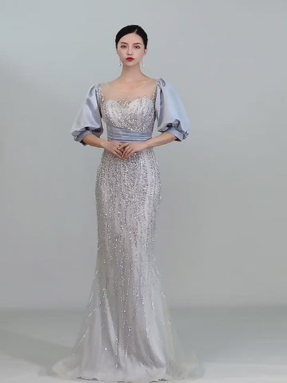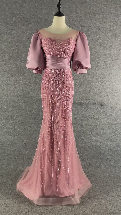 Puff Sleeve Mother of the Bride Dress Sheath Beaded Prom Dress 2022 FD2787