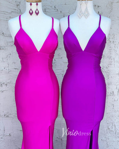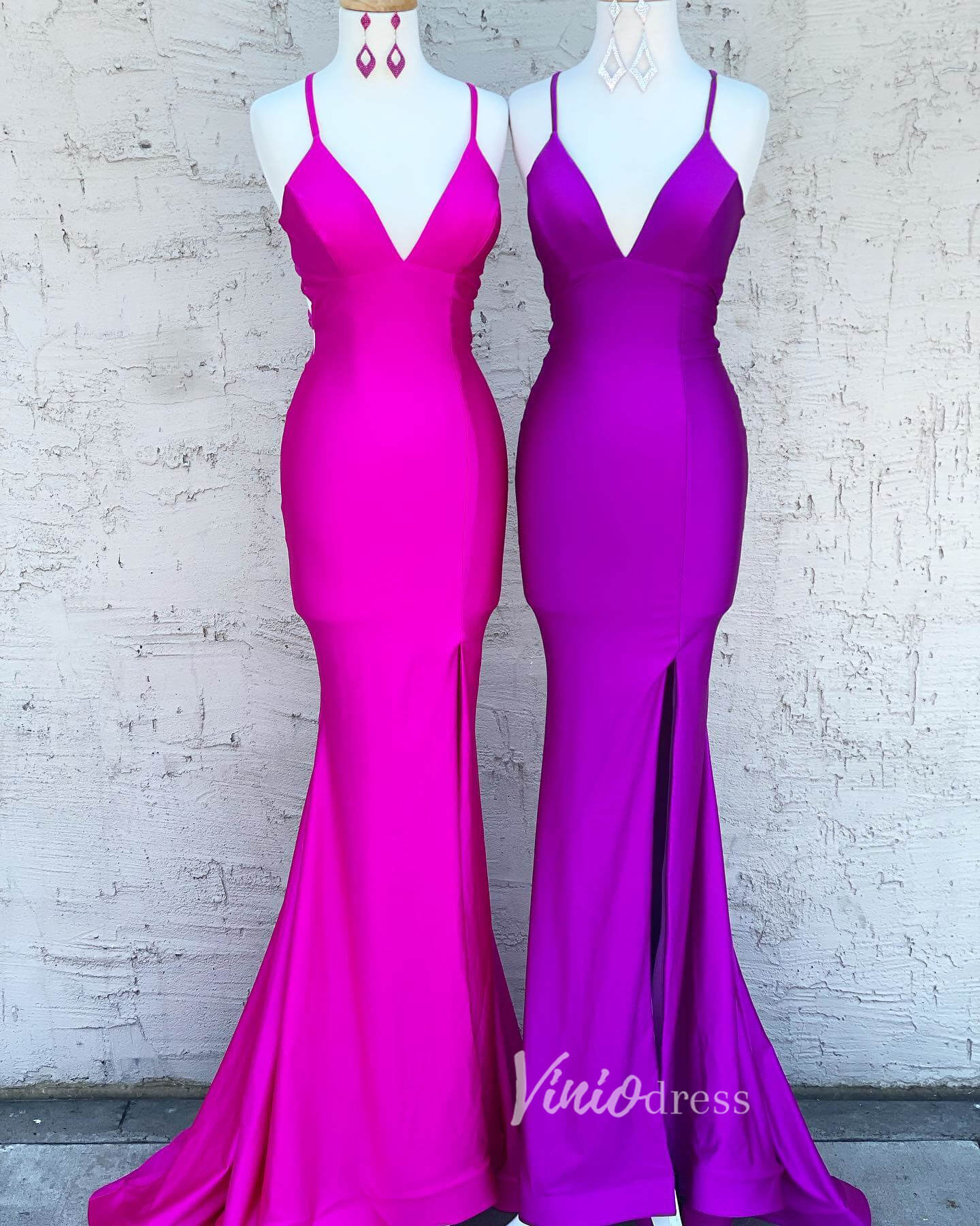 Simple Purple Prom Dresses with Slit Mermaid Spaghetti Strap Evening Dress FD3201