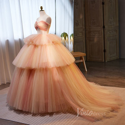 Make a dynamic entrance in this elegant Radiant Ruffled Quinceanera Dress. Crafted from strapless pleated tulle, it features an ombre tulle skirt lined with ruffles that swirl around you with every step. Make a statement of sophistication and style in this beautiful gown.