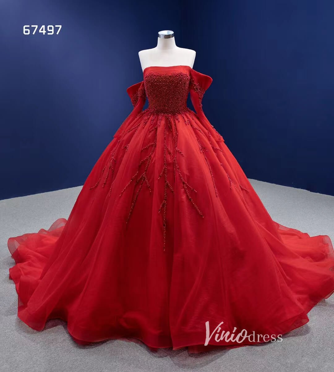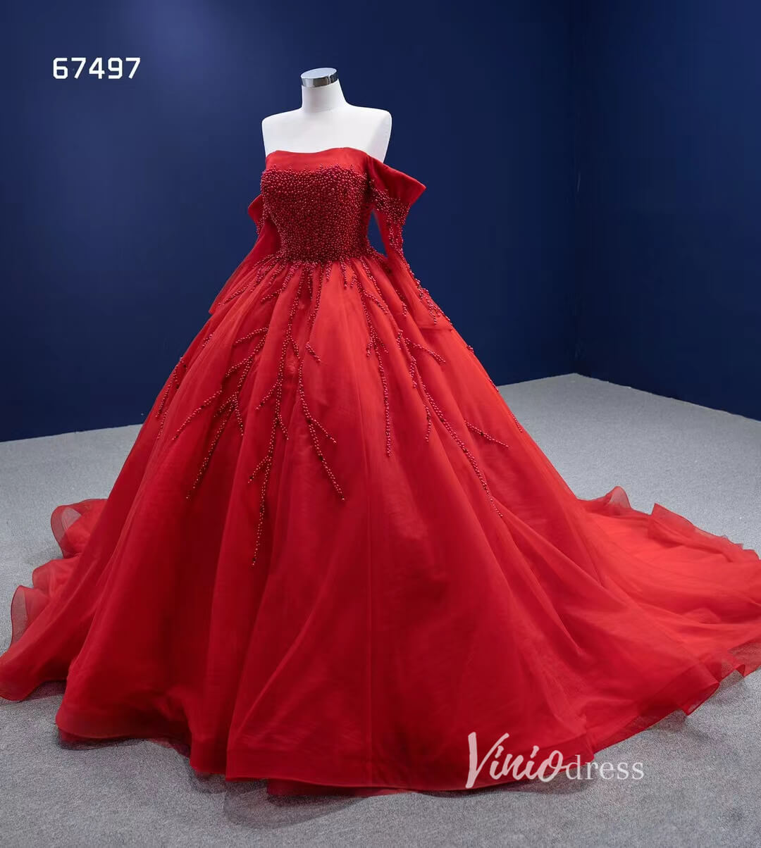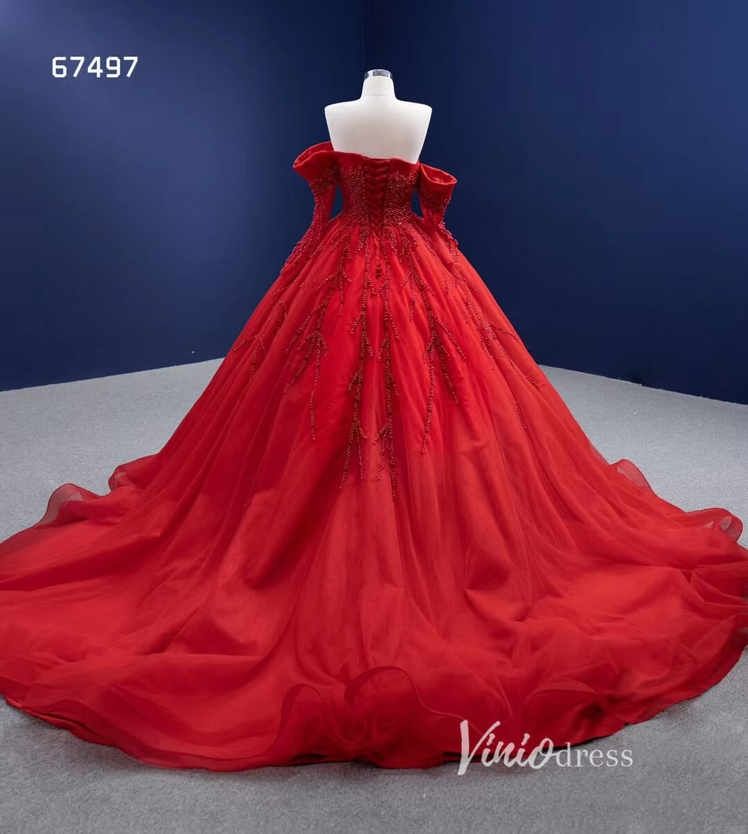 Red Ball Gown Wedding Dresses Long Sleeve Sweet 16 Dress 67497