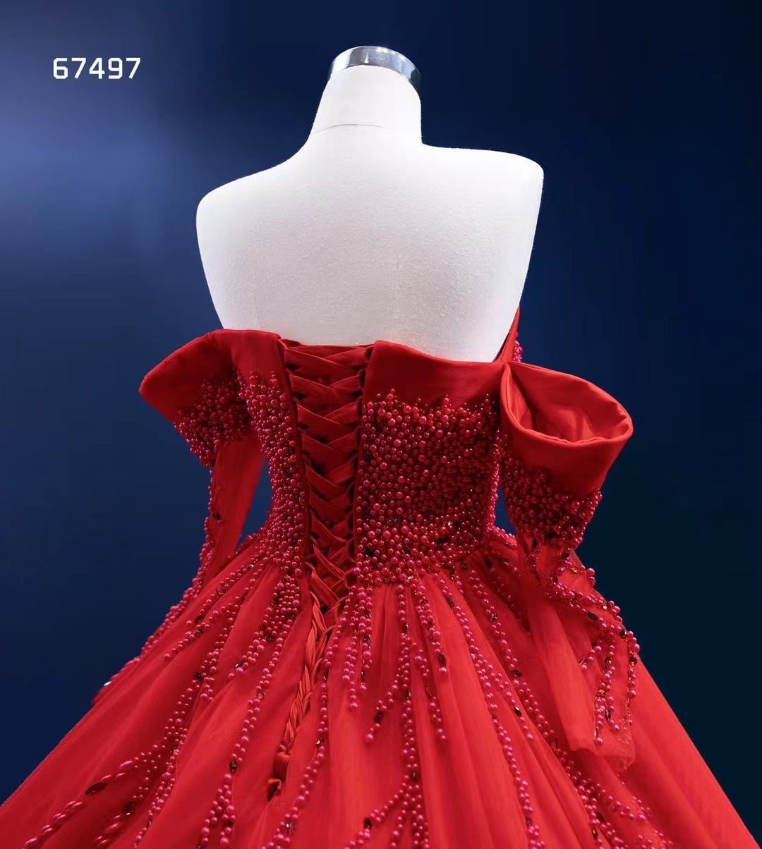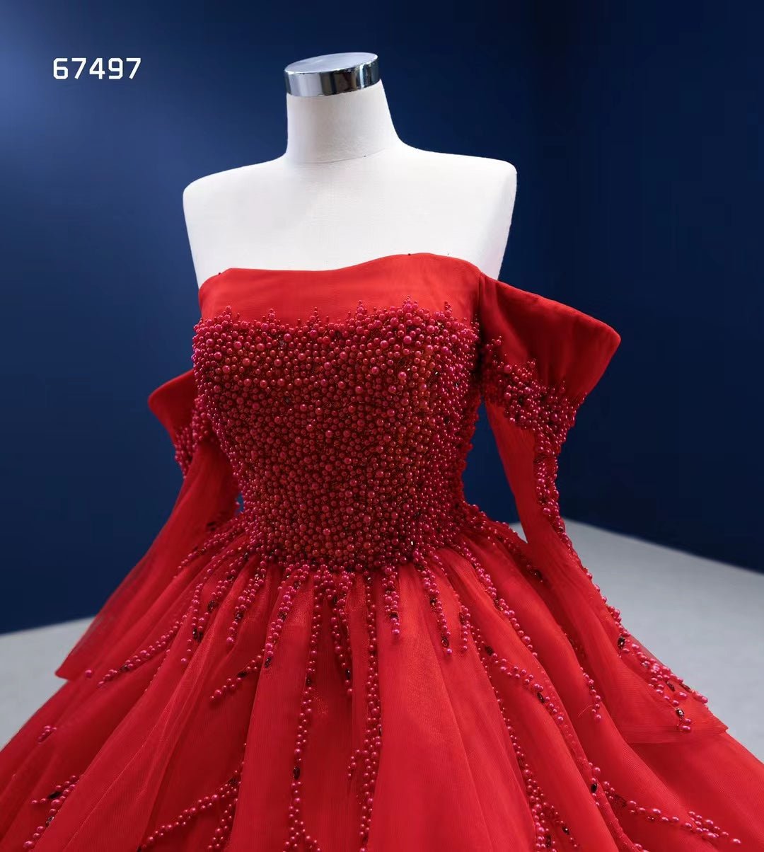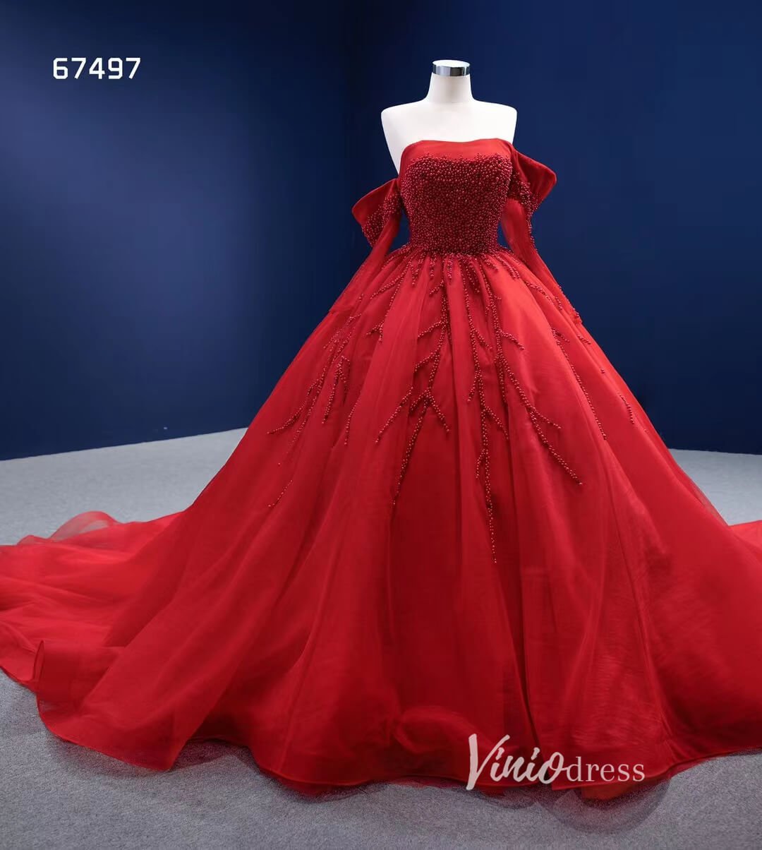 Red Ball Gown Wedding Dresses Long Sleeve Sweet 16 Dress 67497