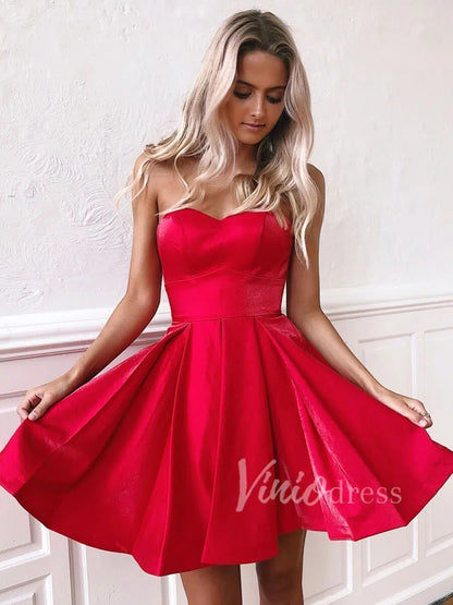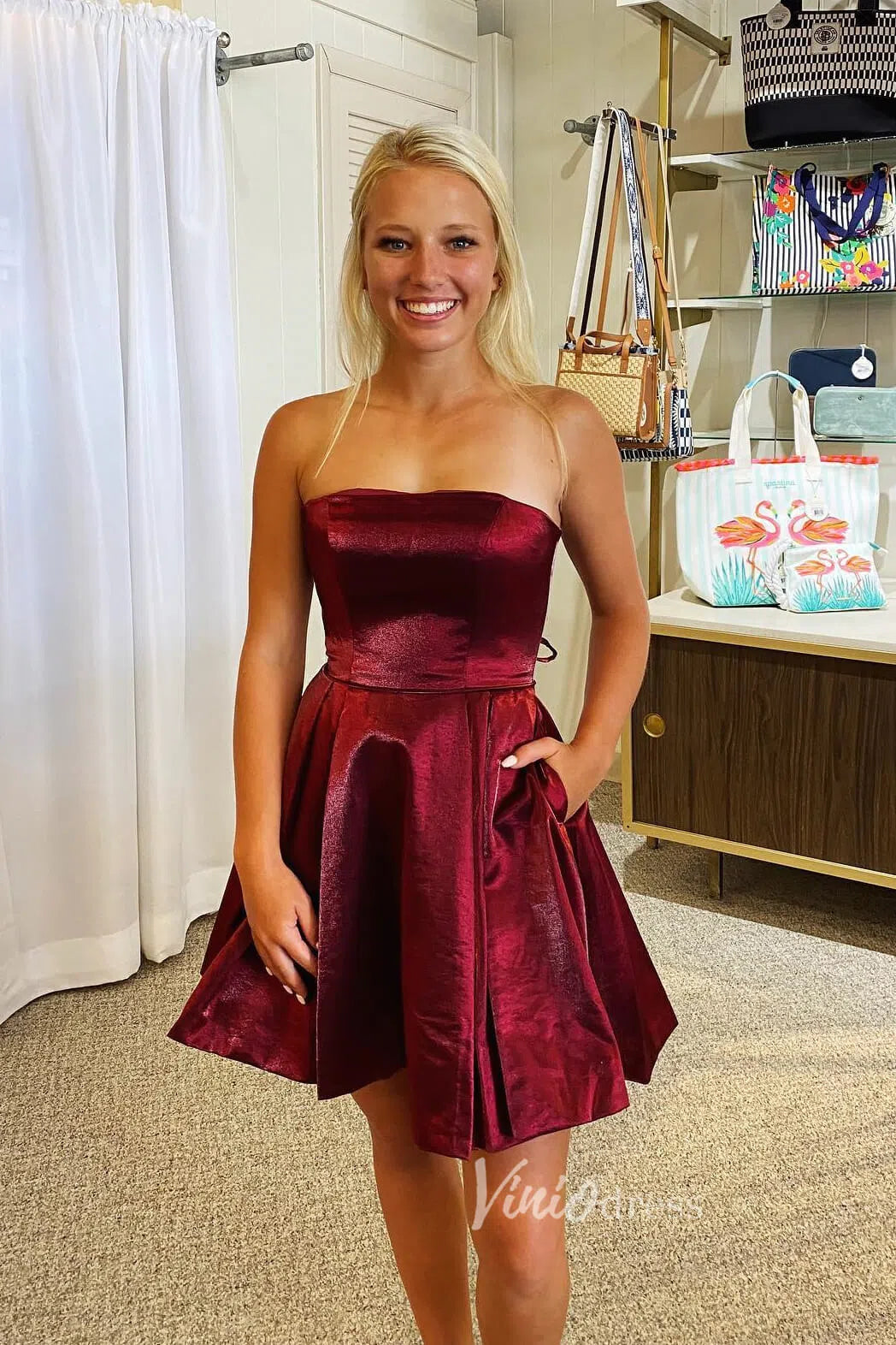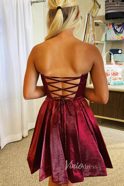 Red Lace Up Strapless Homecoming Dresses with Pockets SD1189
