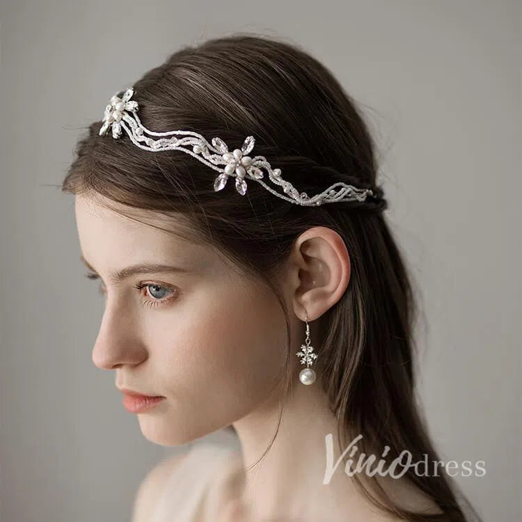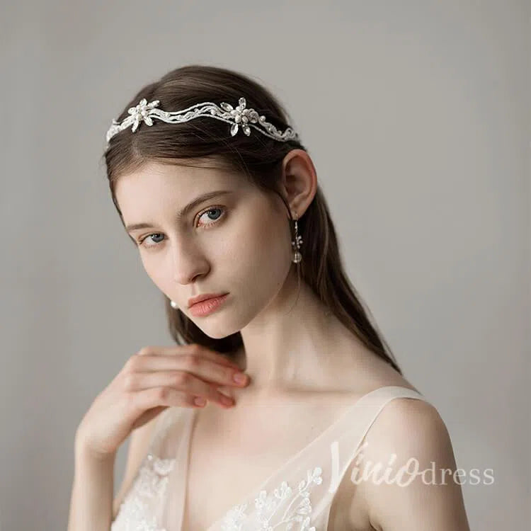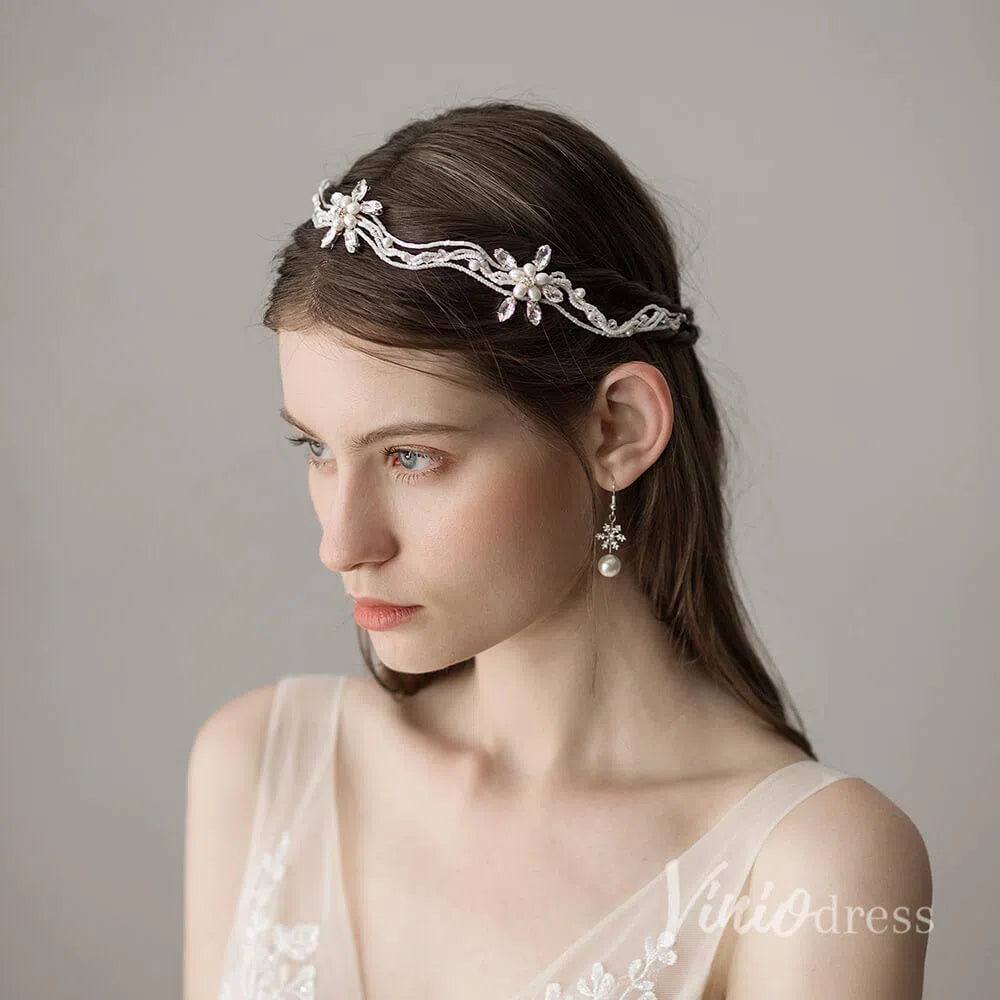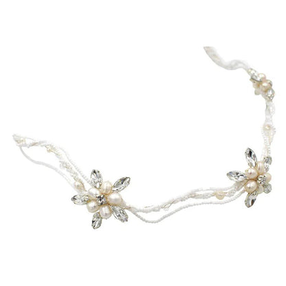 Retro Silver Pearls Beaded Headband with Crystals ACC1115