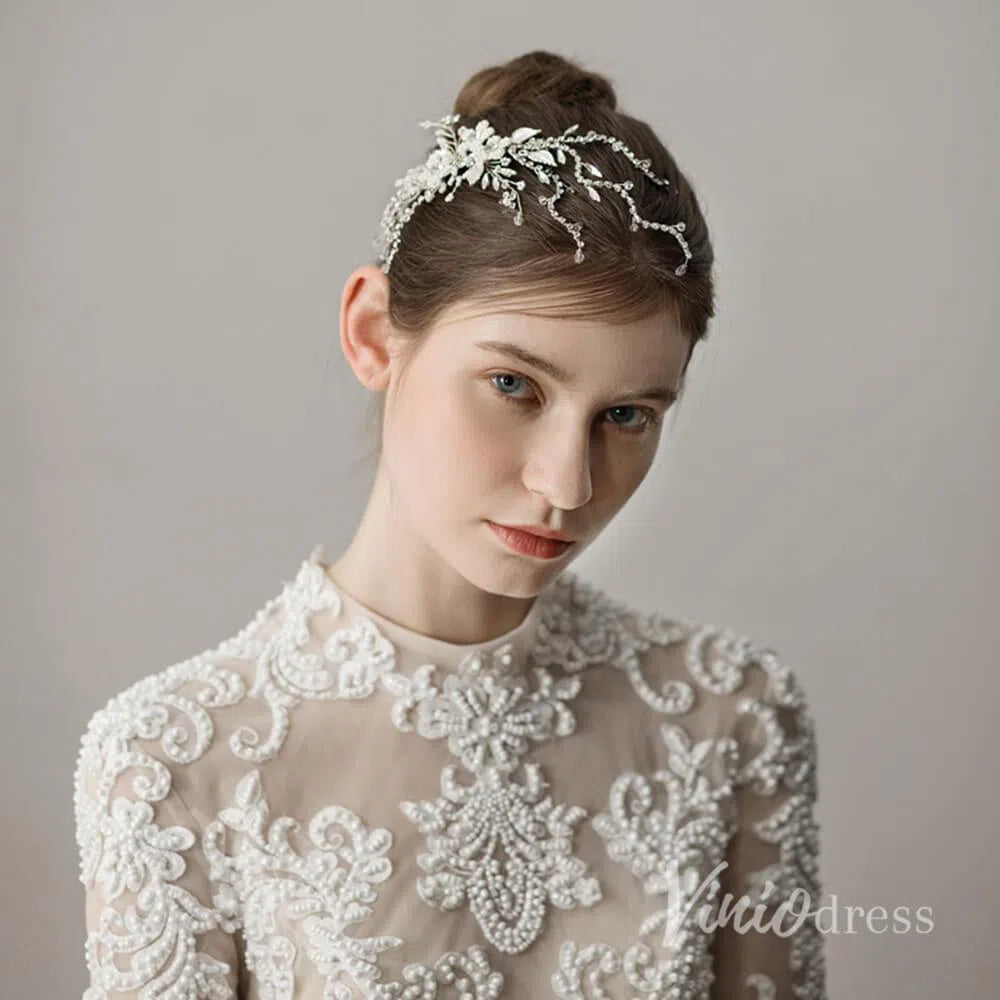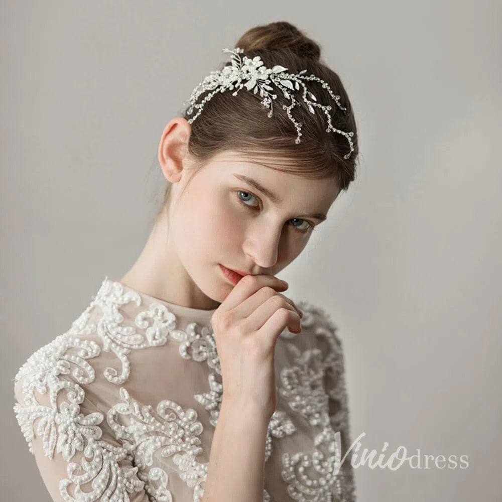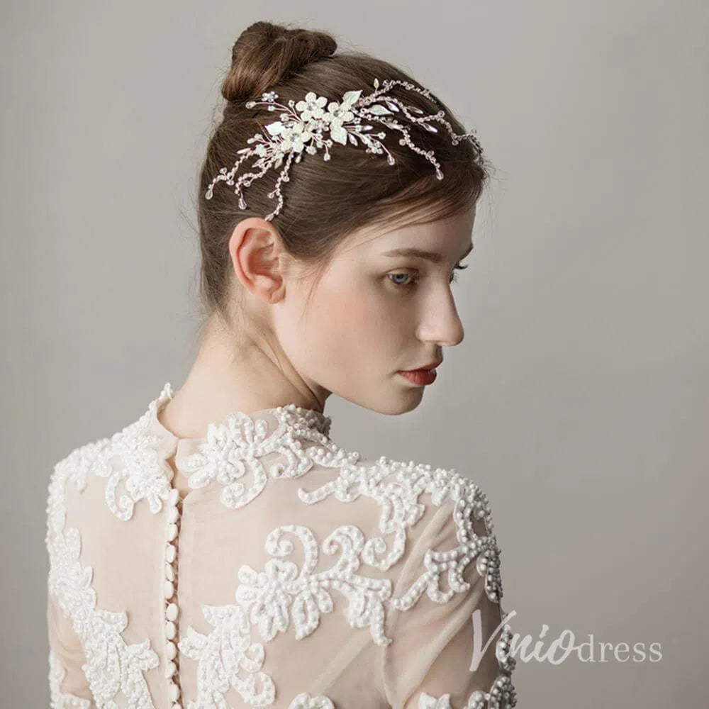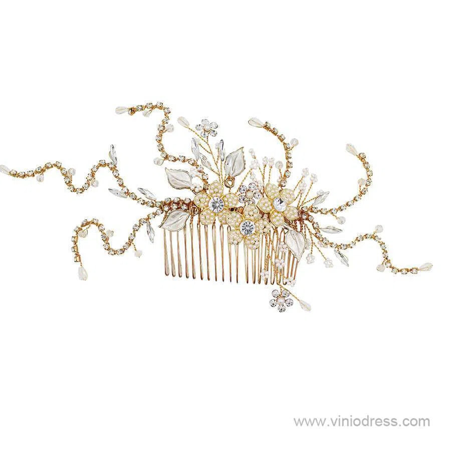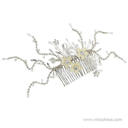 Scattered Crystal Floral Silver Bridal Comb ACC1137