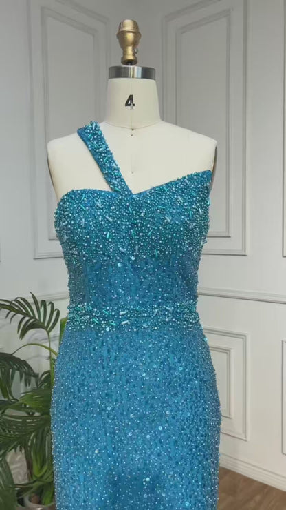 Shimmer Ocean Blue Prom Dresses Beaded Sequin Evening Dress 20074