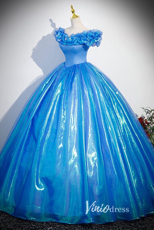 Capture attention in ever-glorious blue with this shimmering off the shoulder quinceanera dress. Crafted from a luxuriant fabric, the elegant cut and silhouette of this dress will no doubt make you the star of the show. An ideal choice for those seeking a more refined and timeless look.