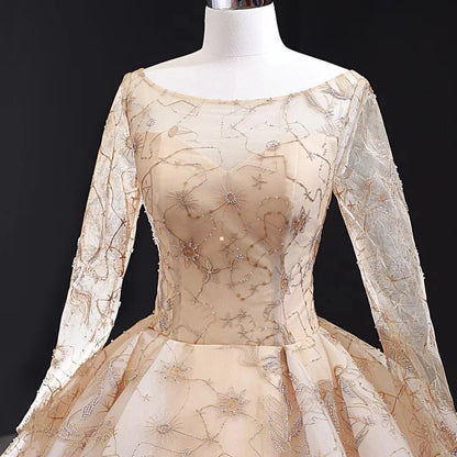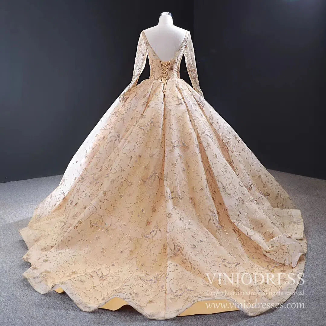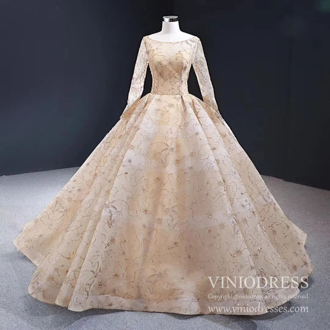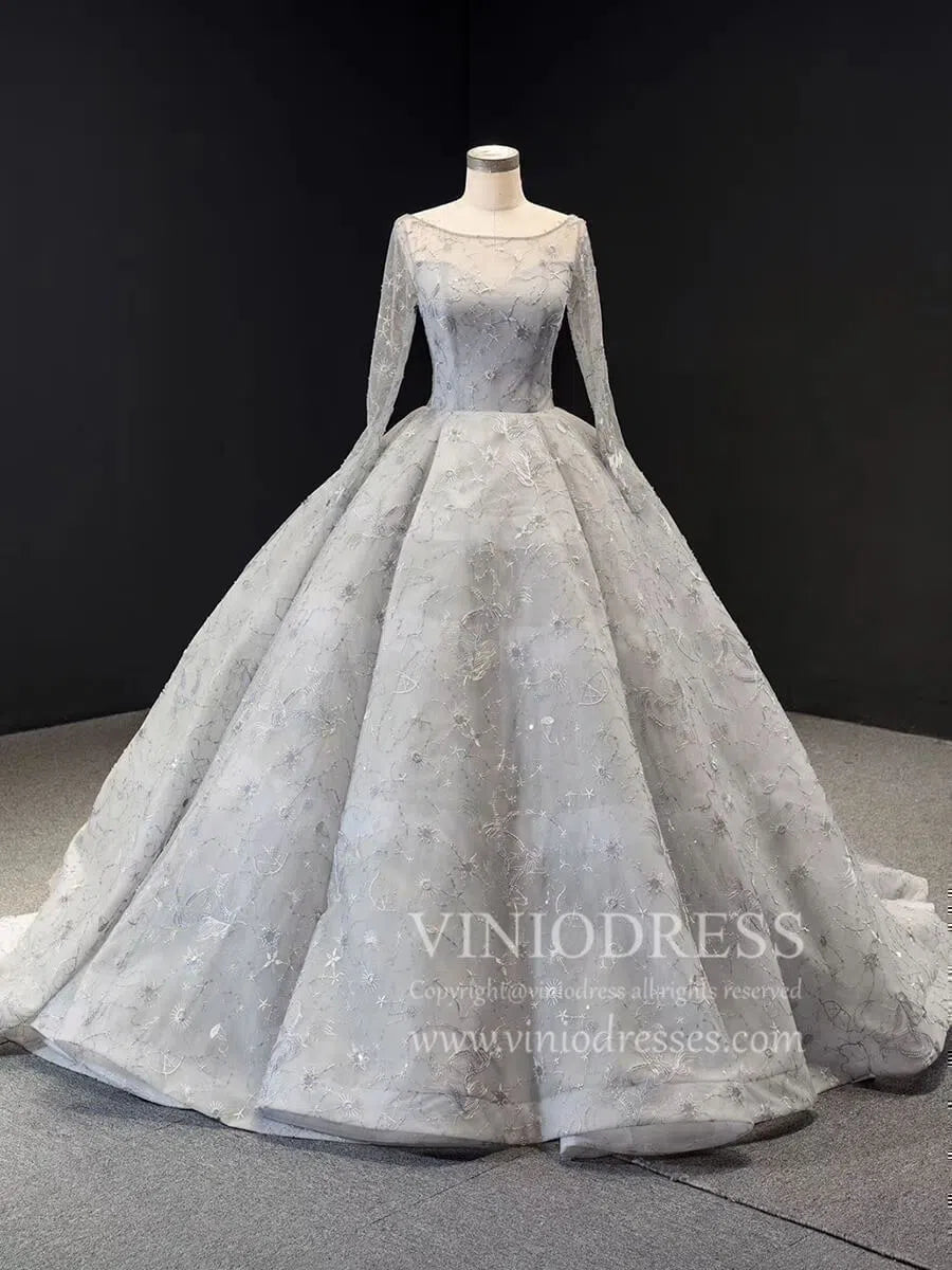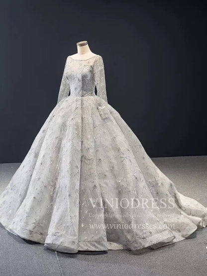 Silver Emboridered Long Sleeve Sweet 16 Dresses Ball Gown Quince Dress FD1742 viniodress