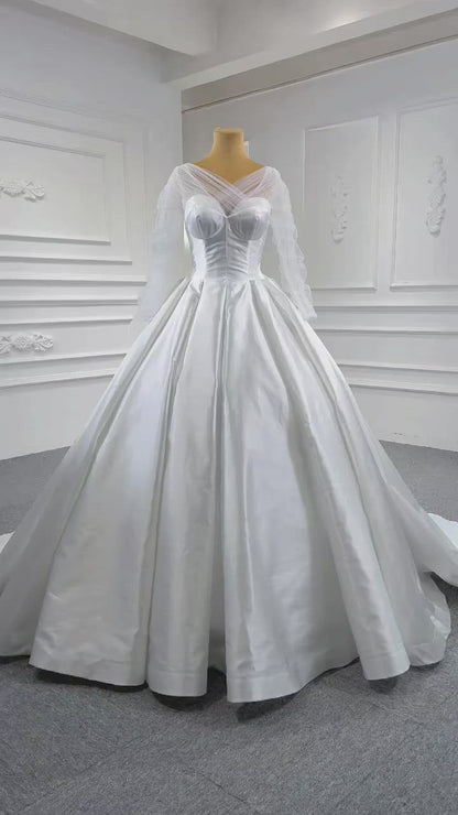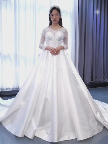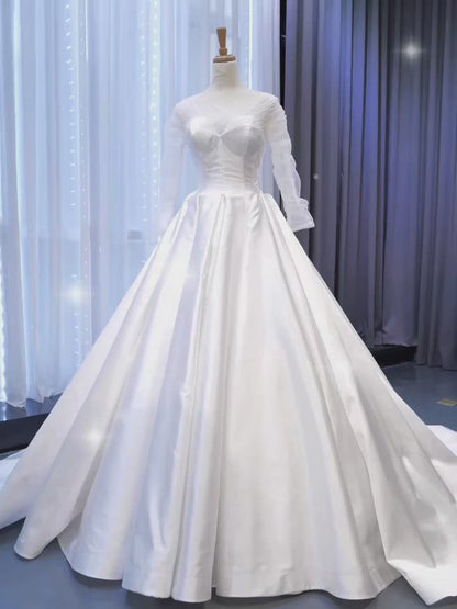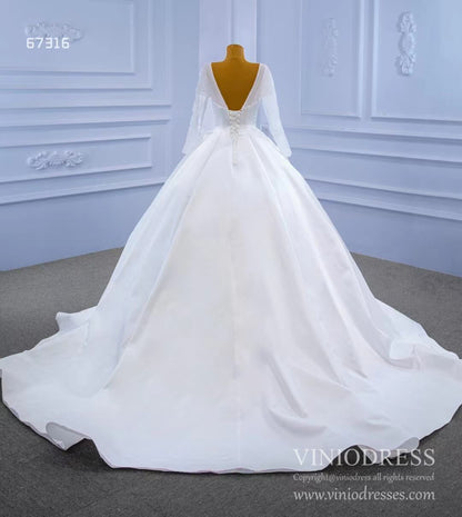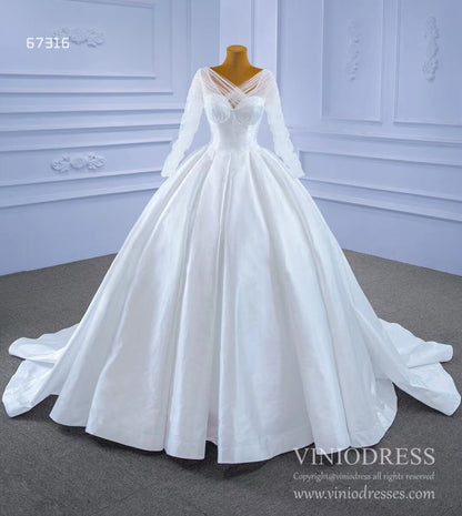 Simple Modest Satin Wedding Gown with Long Sleeves Viniodress 67316
