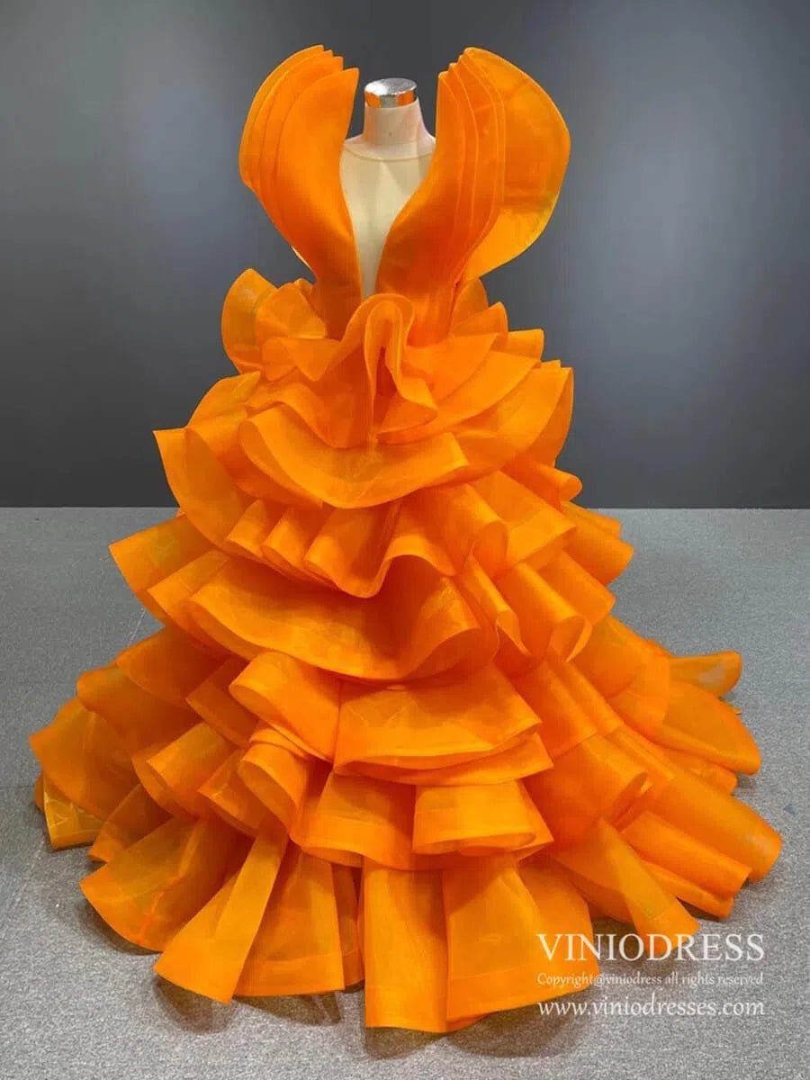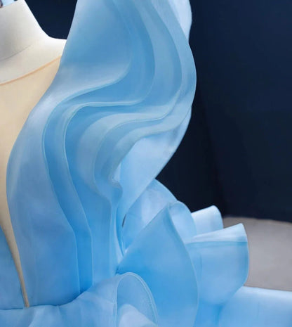Sky Blue Pageant Gown Deep V-neck Tiered Prom Dresses 67202 viniodress