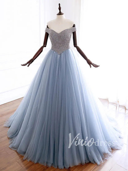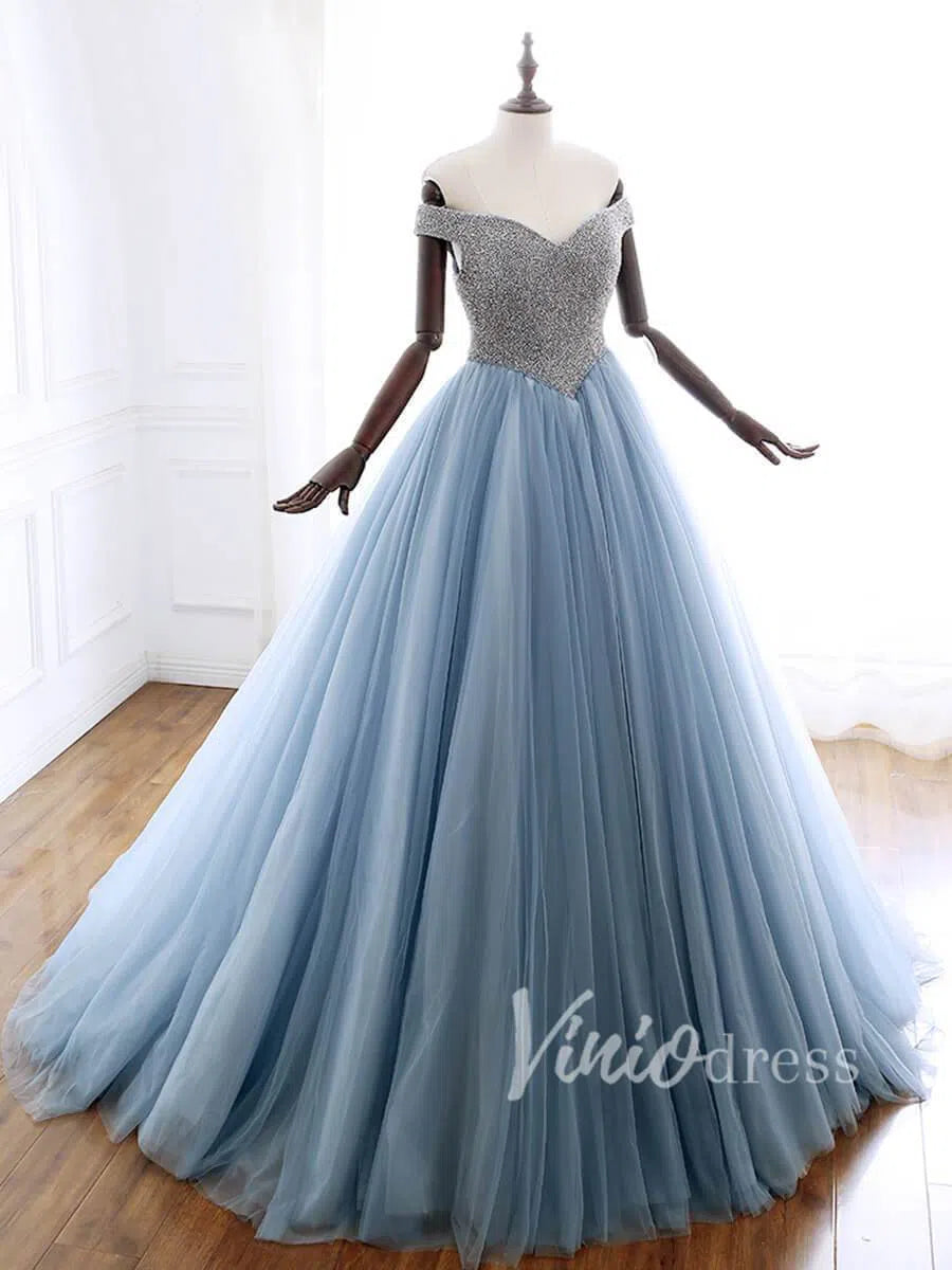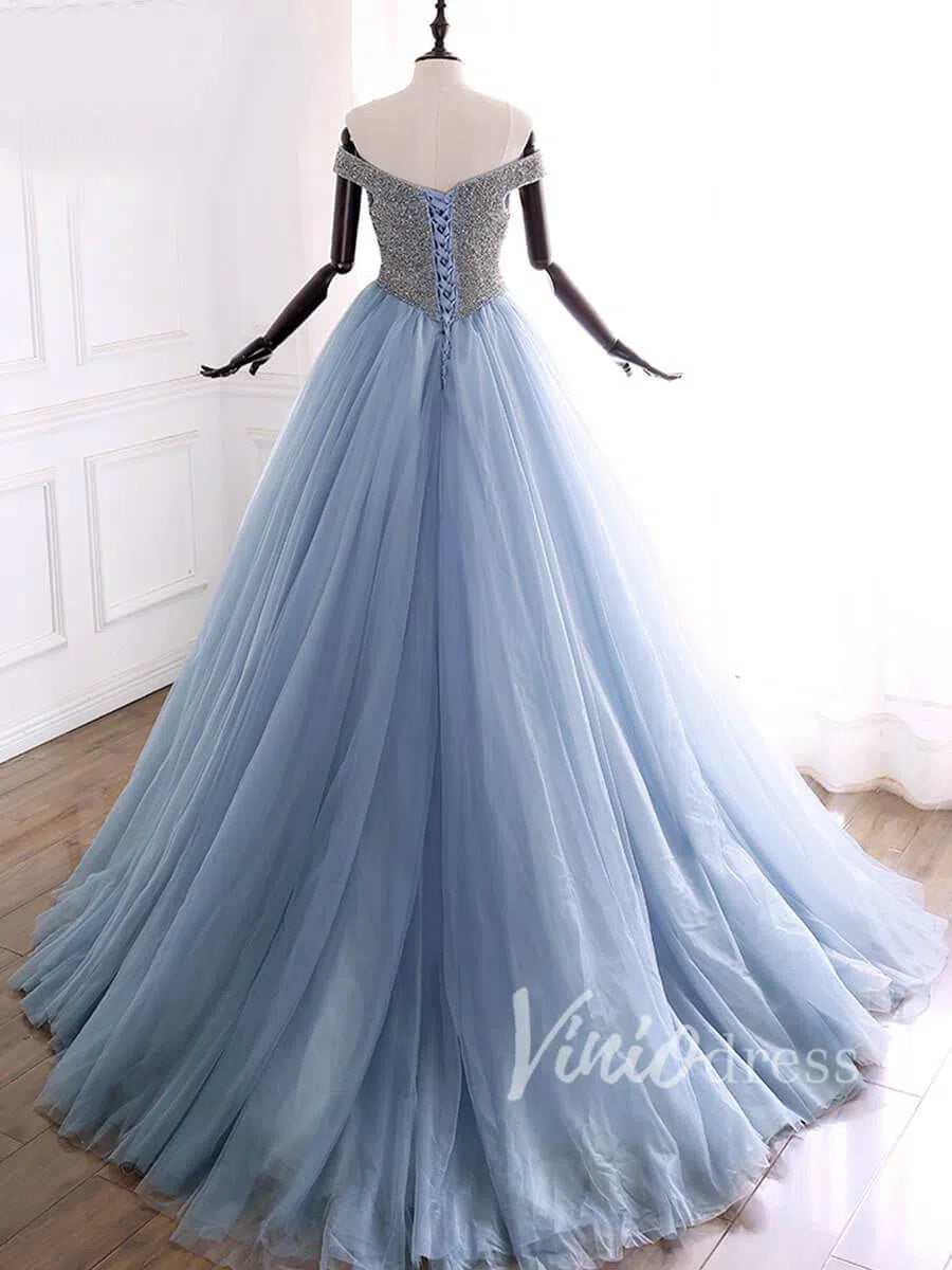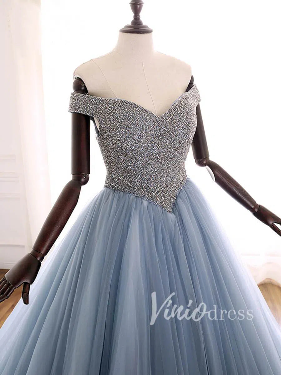 Slate Blue Beaded Long Prom Dresses Online FD1488