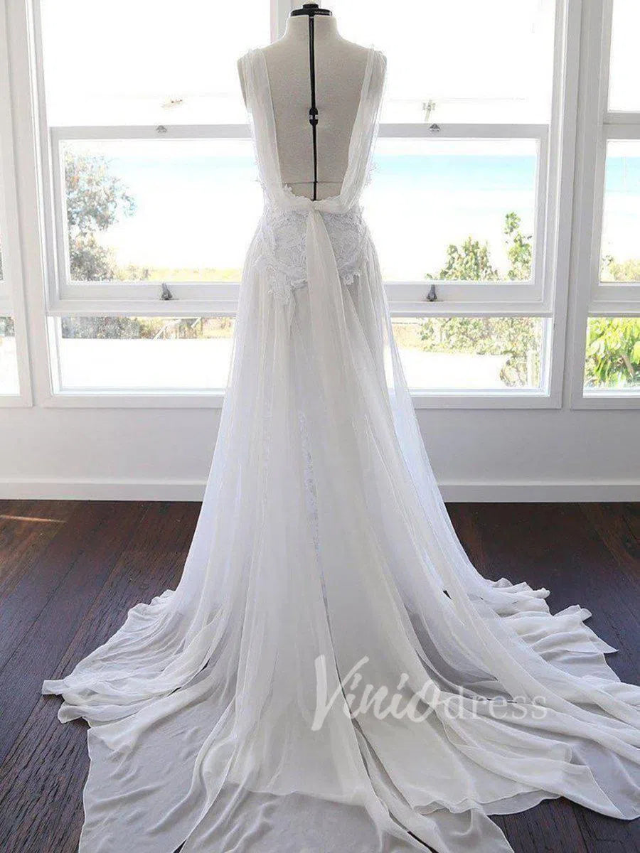 Spaghetti Strap Lace&Chiffon Bohemian Wedding Dresses with Slit VW1220
