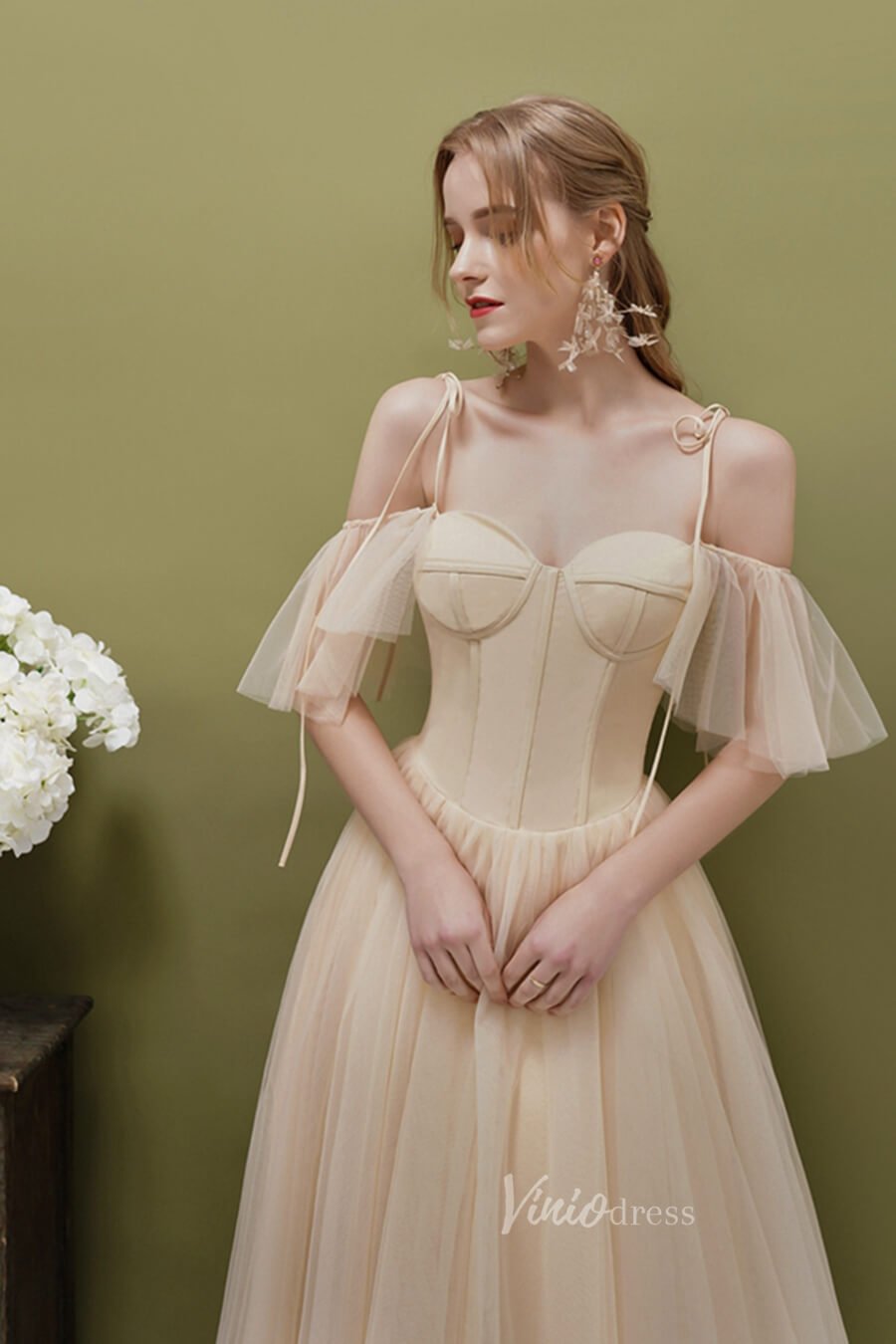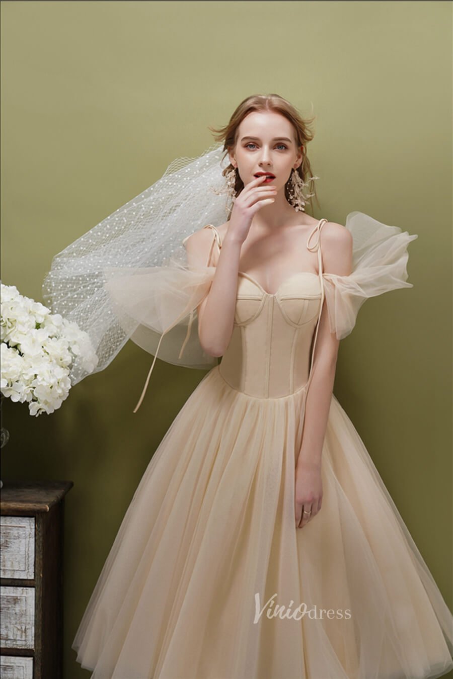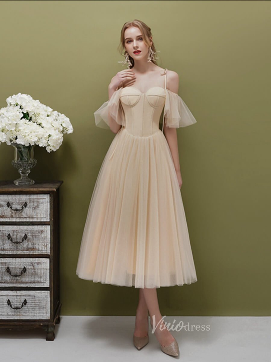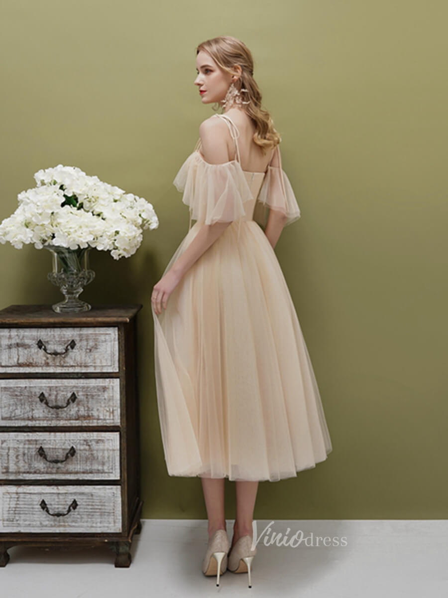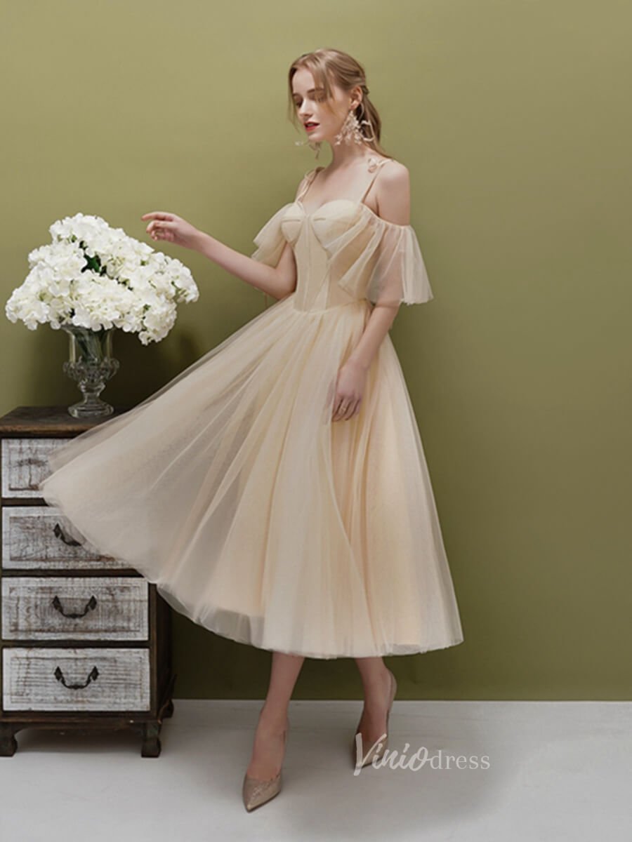 A-line Tulle Tea Length Prom Dresses Champagne FD2514