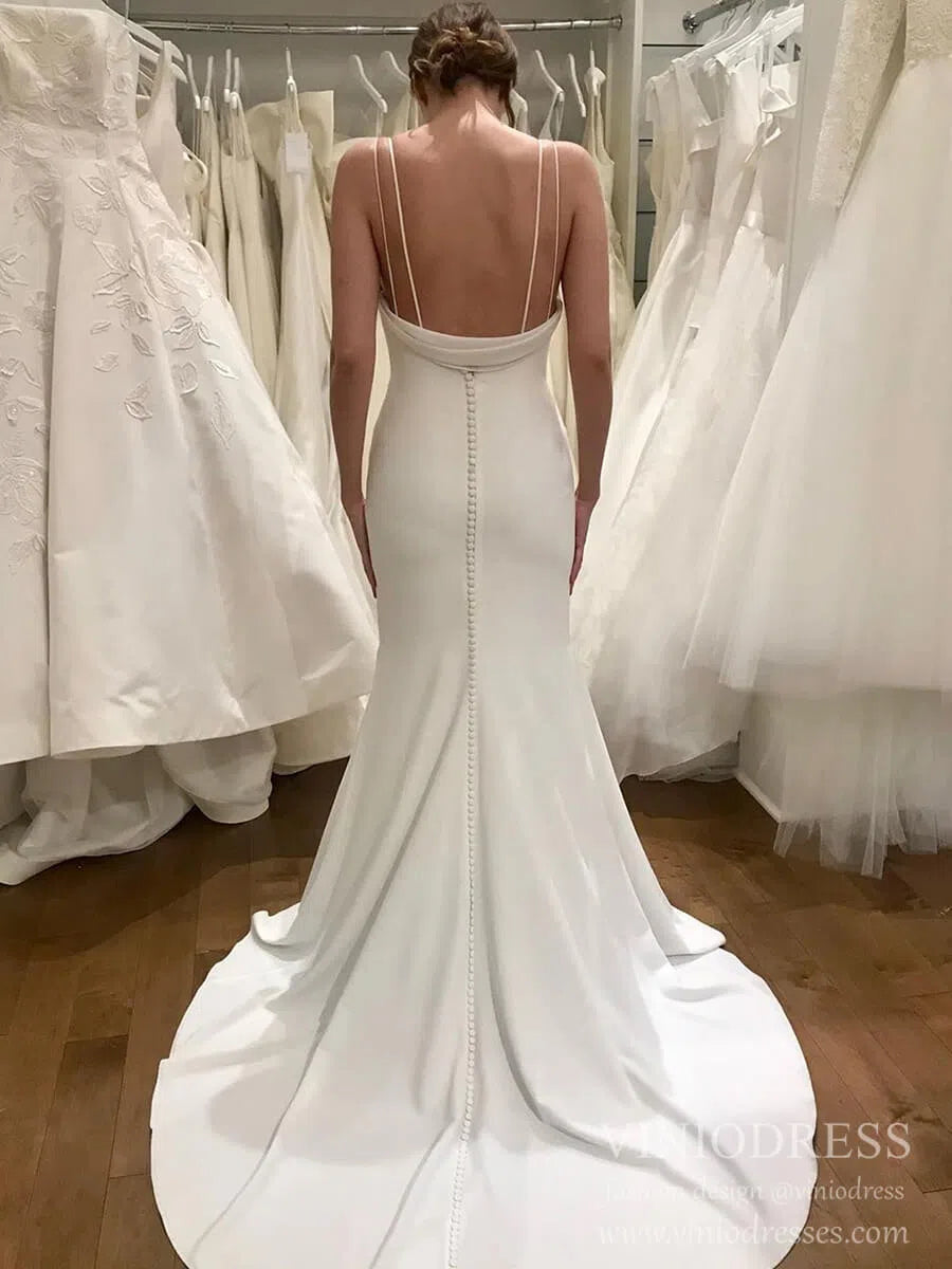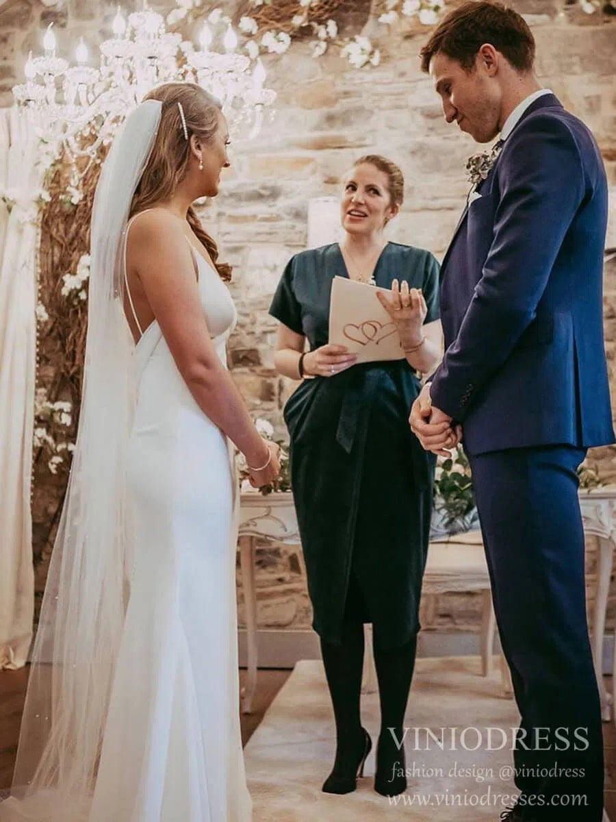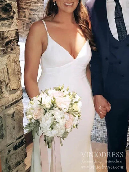 Sheath Minimalist Wedding Dresses Spaghetti Strap Simple Satin Wedding Dress VW1573