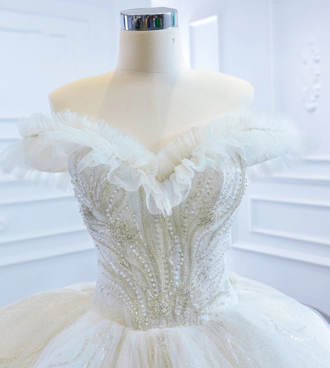 This 2-in-1 luxury baby blue Overskirt Gown features a breathtaking beaded mermaid silhouette with half lining, corset back, and intricate lace details. The dramatic off-the-shoulder floral neckline pairs beautifully with the detachable 3D flower overskirt, creating a stunning transformation from fitted glamour to voluminous elegance. Perfect for weddings, pageants, gala events, or red-carpet moments, this couture dress delivers unforgettable sparkle and show-stopping style.